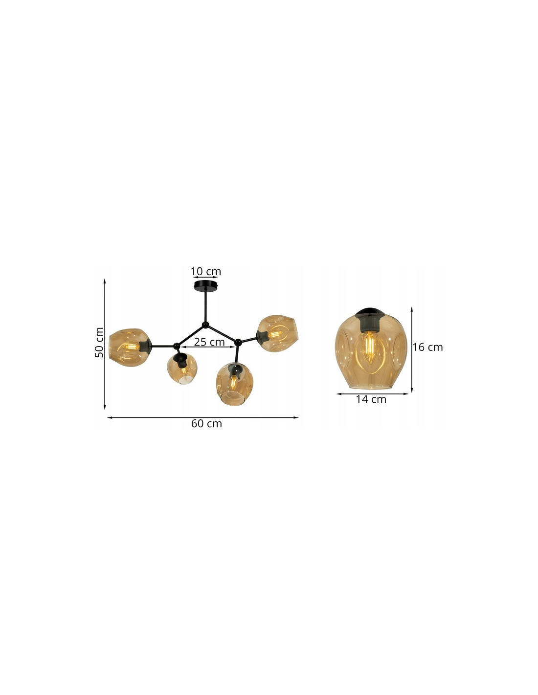 Przedstawiamy bursztynową lampę sufitową typu pająk, która doskonale uzupełni każde wnętrze, łącząc w sobie estetykę i funkcjonalność. Lampę charakteryzują eleganckie, okrągłe, transparentne klosze, które delikatnie rozpraszają światło, tworząc przyjemną atmosferę oraz subtelny blask w pomieszczeniu. Takie rozwiązanie idealnie sprawdzi się w sypialni, salonie, jadalni czy biurze, nadając im unikalnego charakteru.