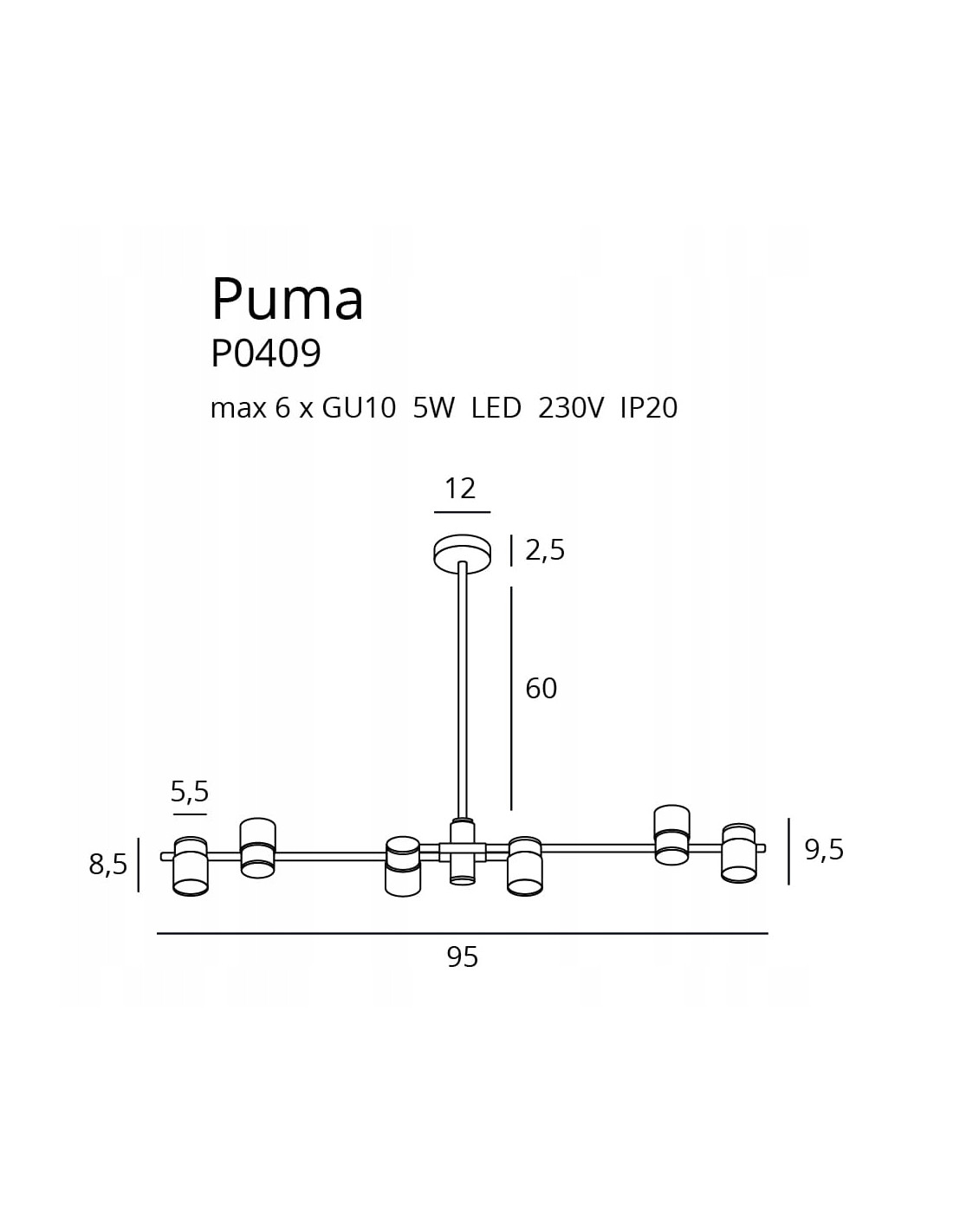 Wszystkie produkty z rodziny Puma są projektowane z myślą o praktyczności i estetyce. Lampa z sześcioma punktami świetlnymi GU10 zapewnia mocne, ale przyjemne dla oka oświetlenie, które sprawdzi się w różnorodnych przestrzeniach. Dzięki możliwości wyboru indywidualnych źródeł światła, uzyskasz możliwość dostosowania intensywności oraz barwy światła do swoich potrzeb.