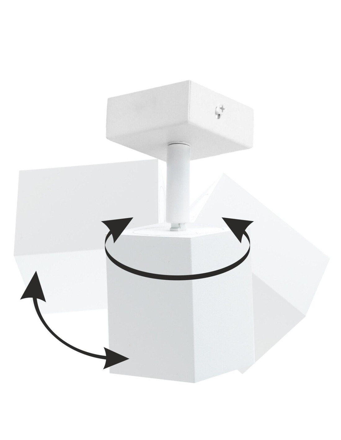 Lampa jest wykonana z wysokiej jakości aluminium, co zapewnia jej trwałość i elegancję. Jej białe wykończenie sprawia, że doskonale komponuje się z różnorodnymi aranżacjami wnętrz, podkreślając ich styl i charakter. Dzięki zastosowaniu regulowanych reflektorów, możliwe jest indywidualne dostosowanie kąta świecenia, co zwiększa funkcjonalność produktu.