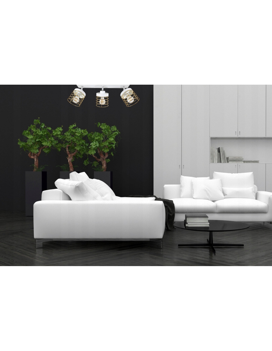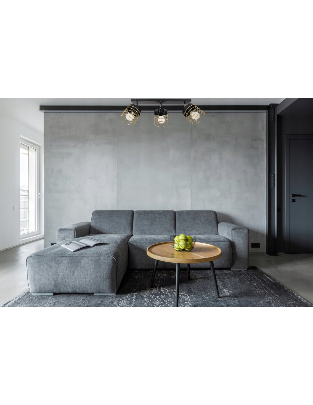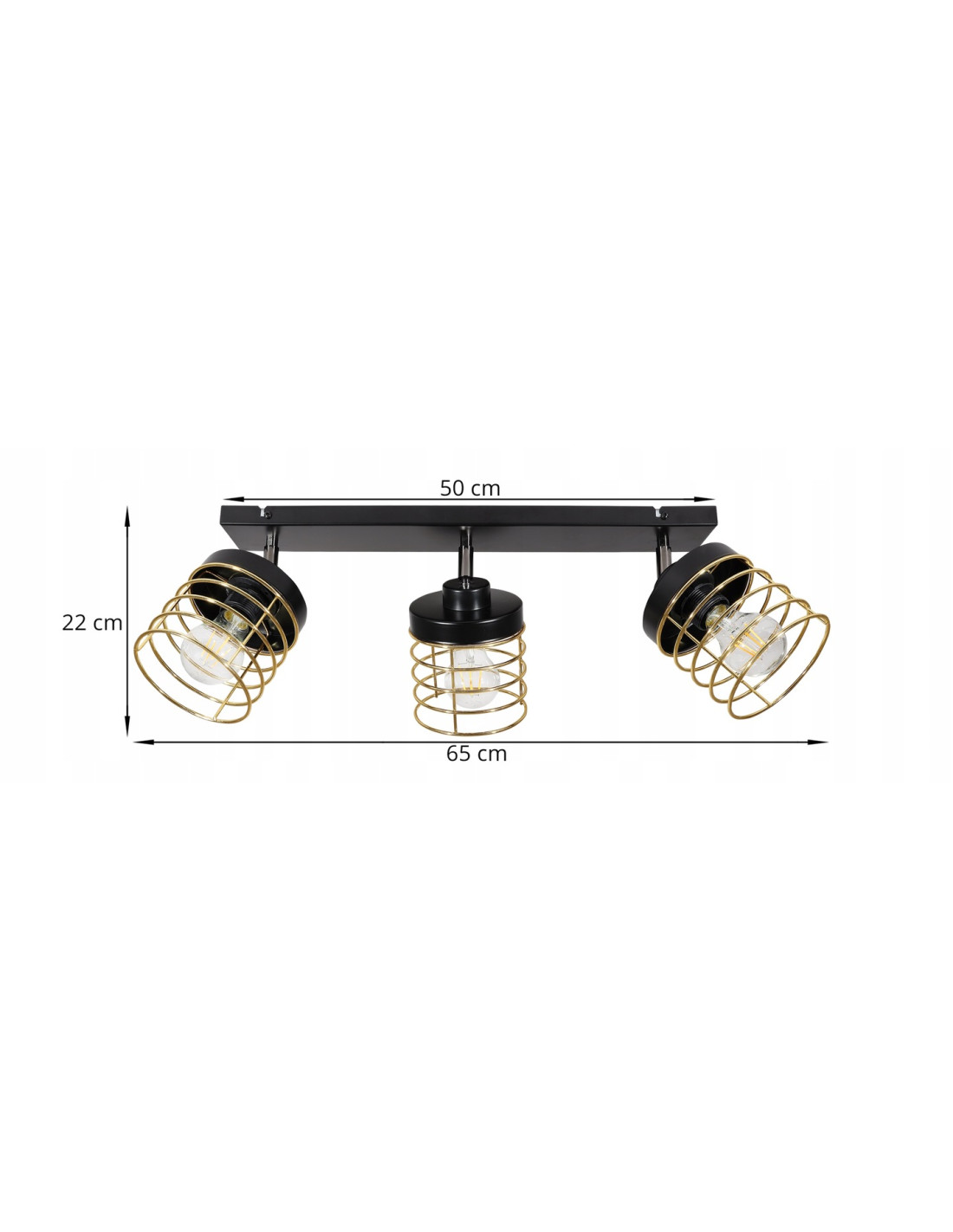 Trzy punktowe źródła światła, zamocowane na regulowanych głowicach, zapewniają wszechstronność i wygodę w użytkowaniu. Dzięki temu lampa z łatwością dostosowuje się do Twoich potrzeb oświetleniowych, idealnie oświetlając korytarz, klatkę schodową, a także pokój dzienny. Przyjemne, ciepłe światło, odbijające się od złotych, błyszczących kloszy, dostarczy Ci niezapomnianych doznań estetycznych.