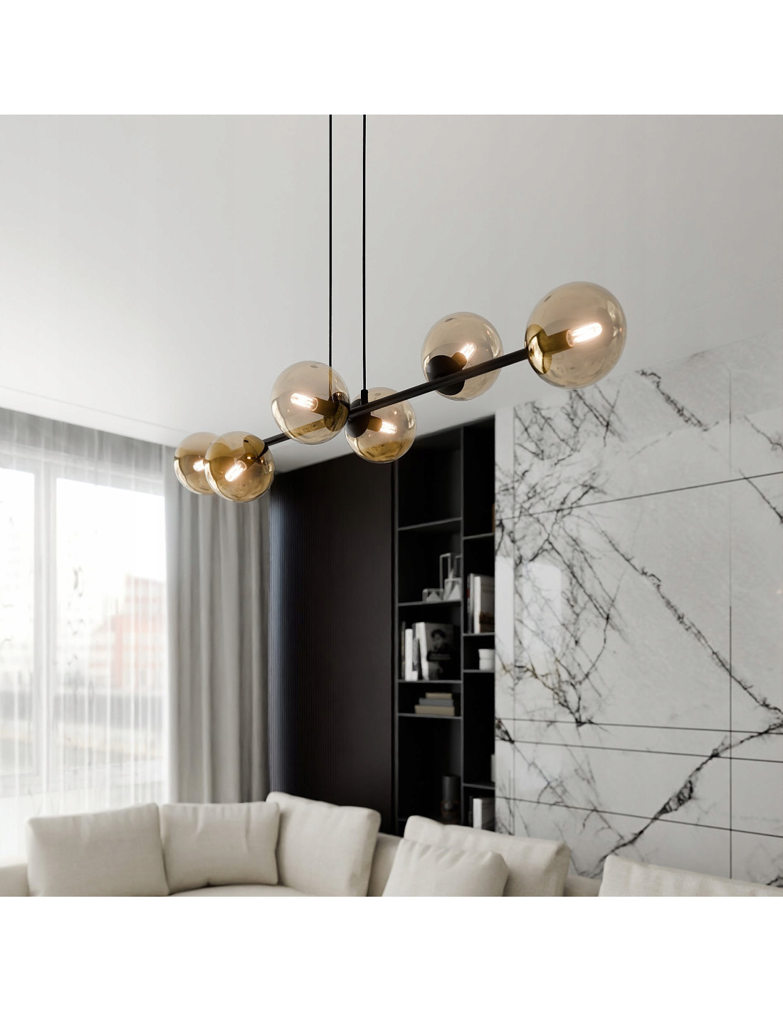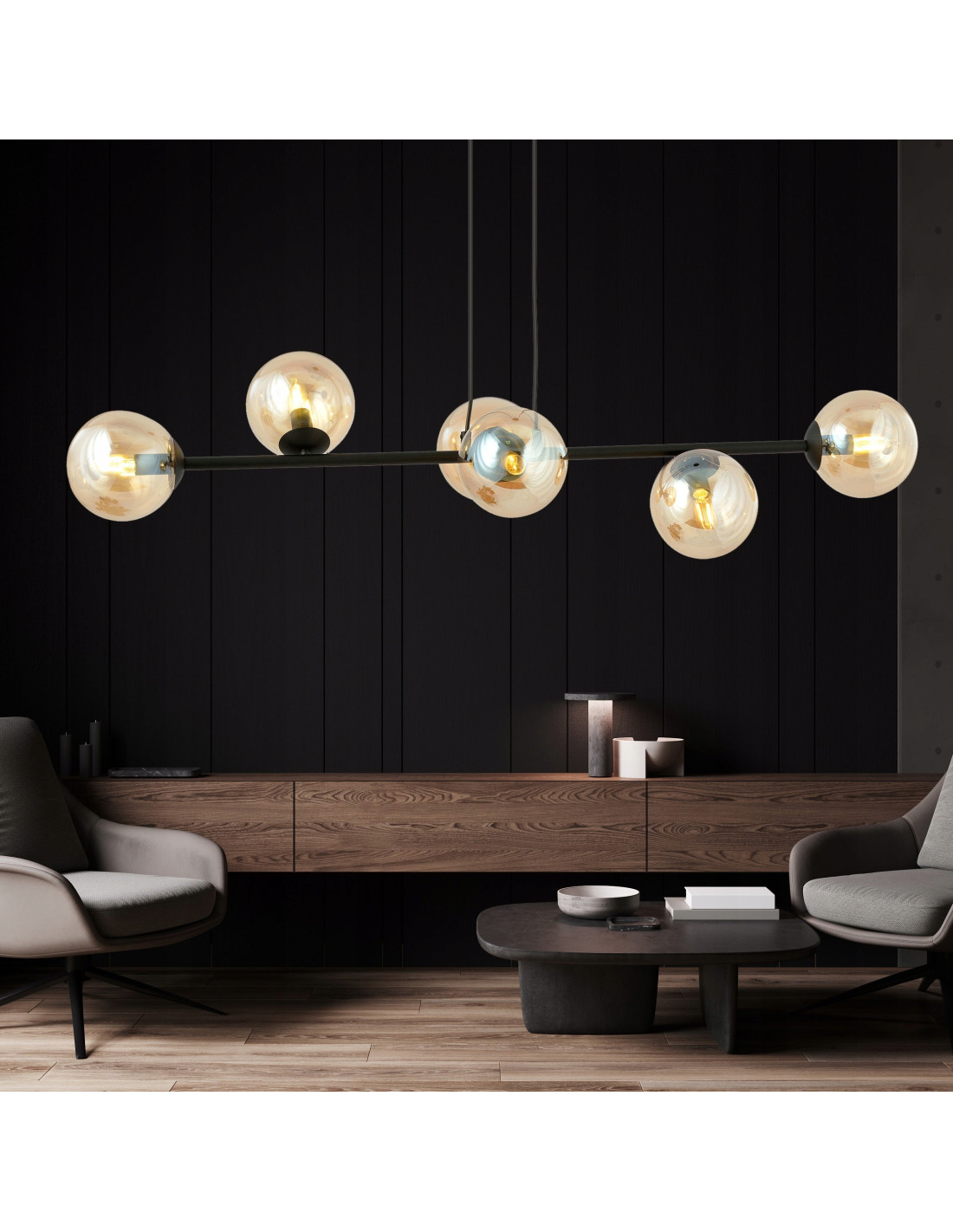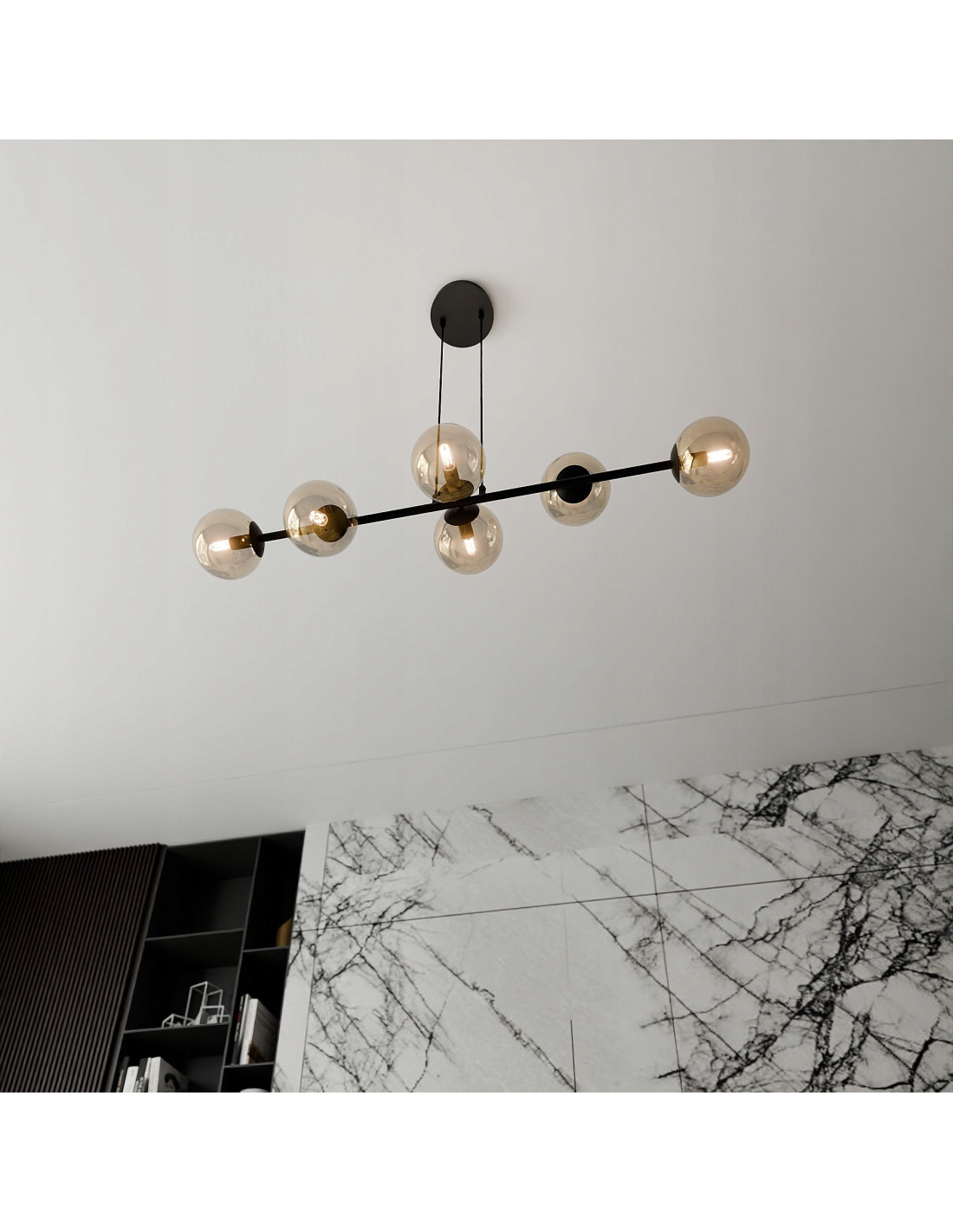 W lampie zastosowano 6 źródeł światła w typie E14, co pozwala na intensywne oświetlenie nawet większych pomieszczeń. Należy jednak pamiętać, że źródła światła nie są w zestawie. Lampa została zaprojektowana z myślą o różnych pomieszczeniach, takich jak biuro, jadalnia, korytarz, kuchnia, pokój dziecięcy, salon czy sypialnia.