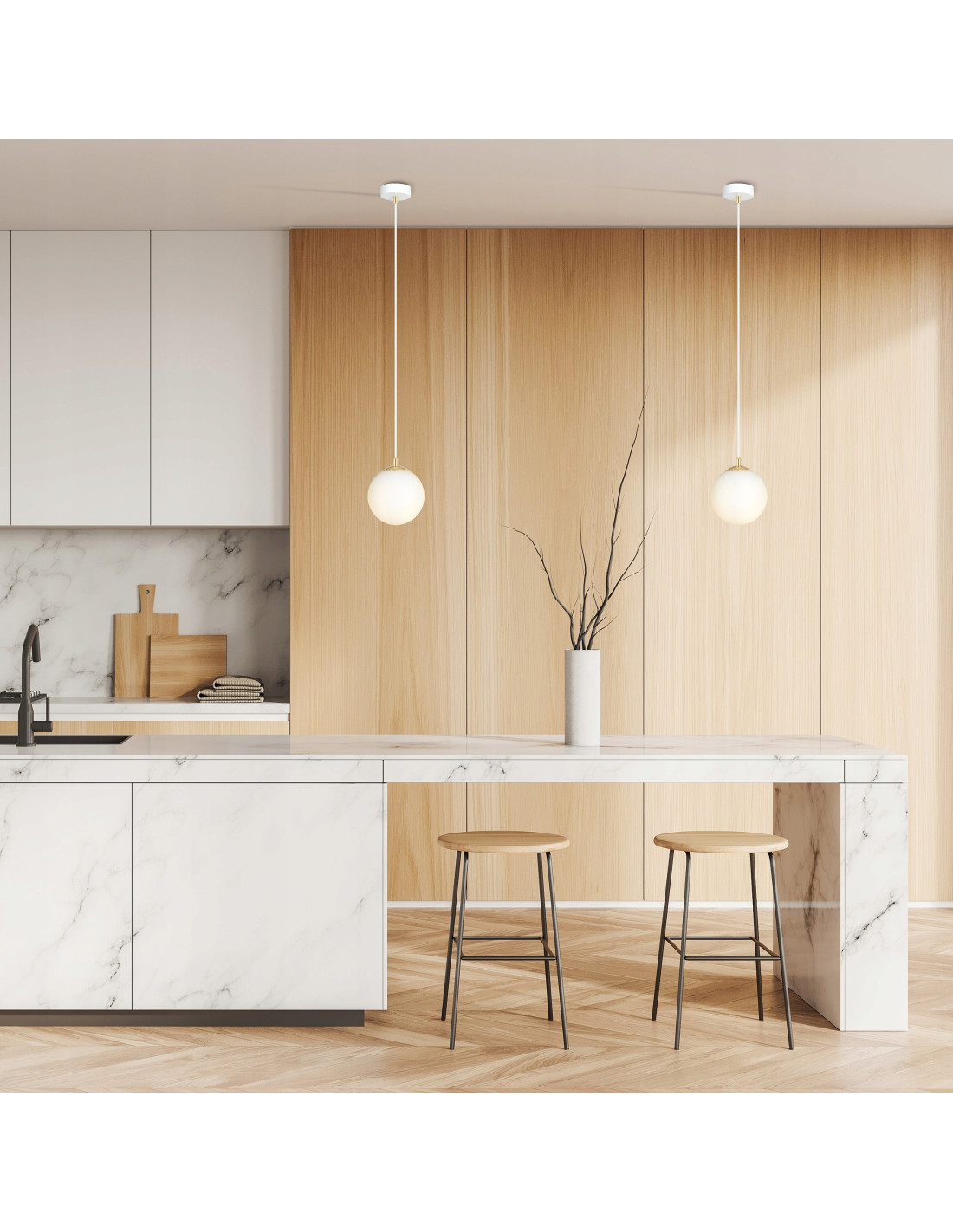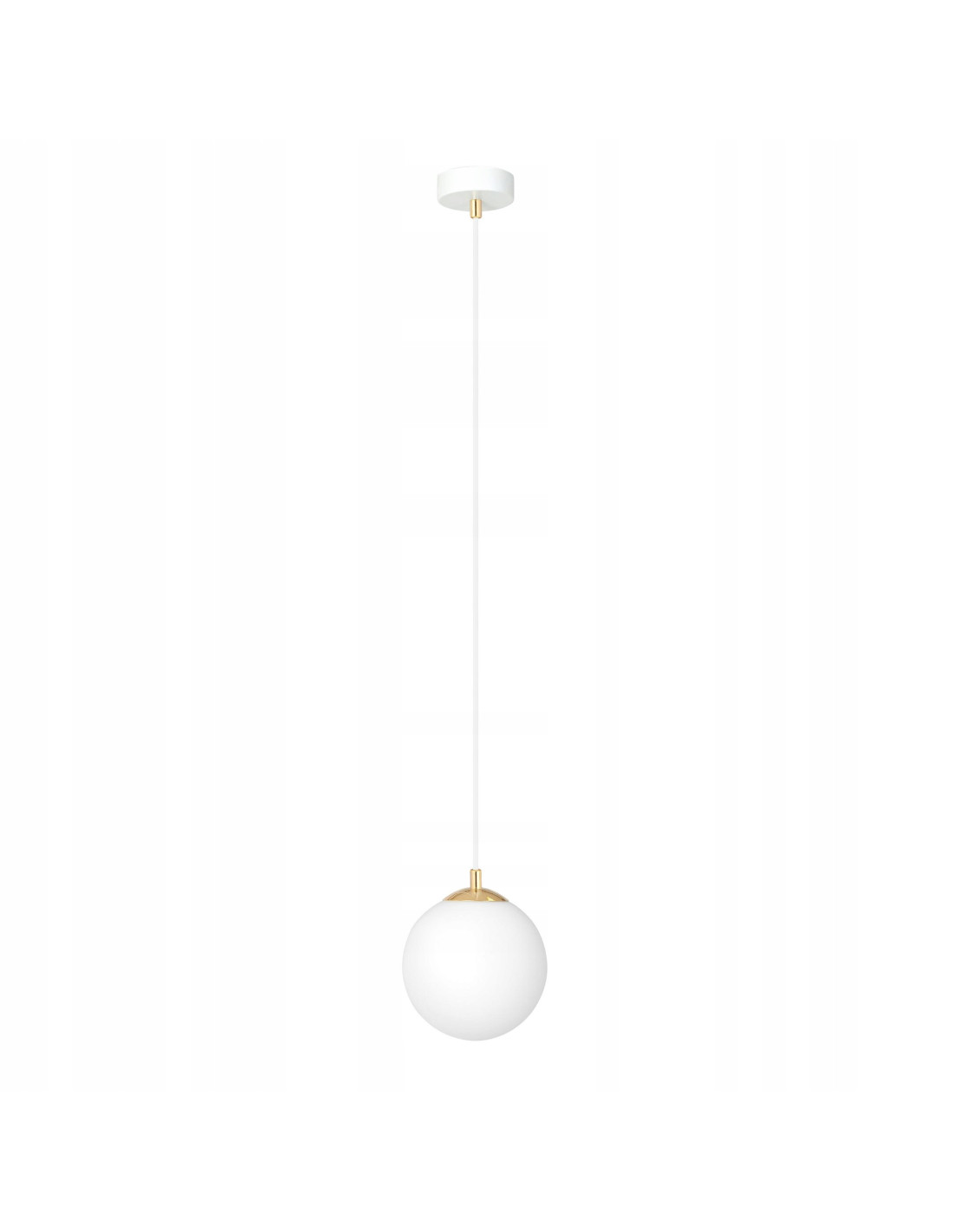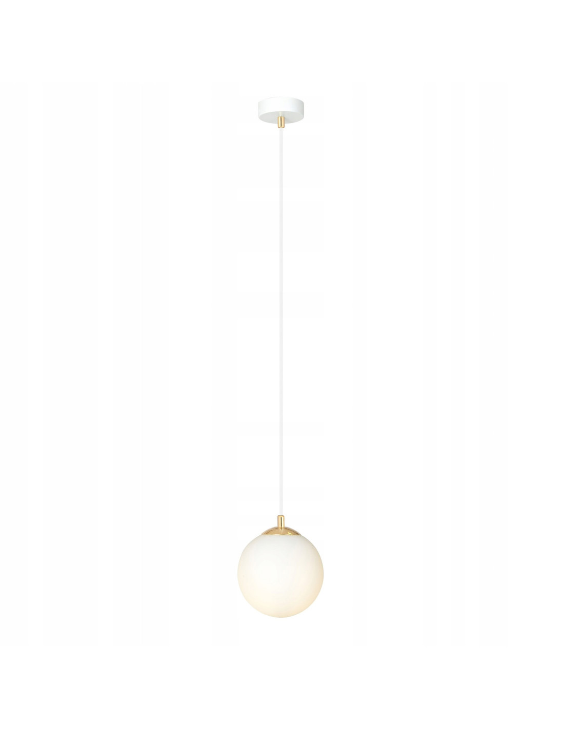Seria ROYAL wyróżnia się wyjątkowym połączeniem bieli oraz błyszczącego złota, co nadaje lampie lekkiego i eleganckiego charakteru. Delikatna zwisająca kula nie tylko dostarcza światła, ale także staje się efektownym elementem dekoracyjnym, który wzbogaca każdą przestrzeń. Wybierając tę lampę, tworzysz przytulną atmosferę w swoim domu.