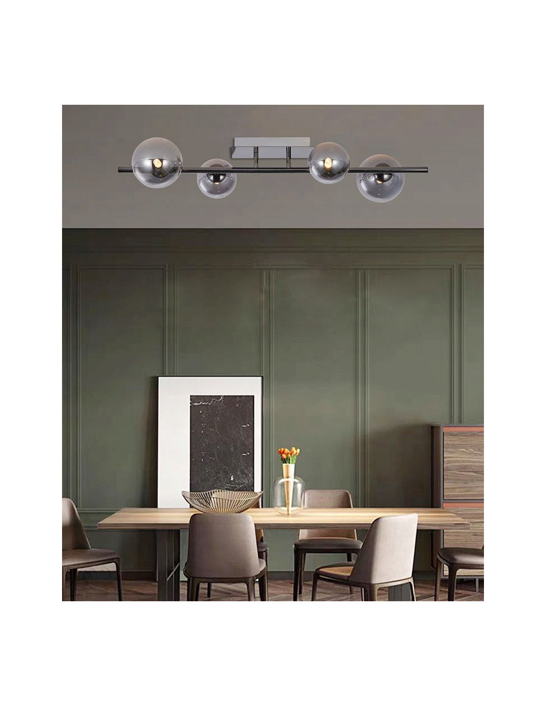 Cztery kuliste klosze lampy są nie tylko funkcjonalne, ale także stanowią estetyczną kompozycję, która zapewnia równomierne oświetlenie. Dzięki zastosowaniu materiałów wysokiej jakości, lampa doskonale rozprasza światło, tworząc przyjemną atmosferę w każdym pomieszczeniu. Design lampy łączy w sobie prostotę i efektowność, co czyni ją idealnym wyborem dla osób ceniących nowoczesny styl.