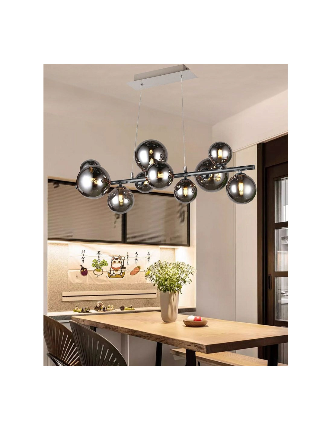 Lampa SEVILLA to doskonałe połączenie elegancji i funkcjonalności. Jej wyjątkowe wykończenie w kolorze czarnego chromu nadaje wnętrzu luksusowego charakteru, doskonale wpasowując się w nowoczesne aranżacje. Kompozycja kulistych kloszy, które tworzą harmonijną całość, nadaje lampie niepowtarzalny wygląd oraz wpływa na jakość oświetlenia, rozpraszając światło w sposób równomierny i przyjemny dla oka.