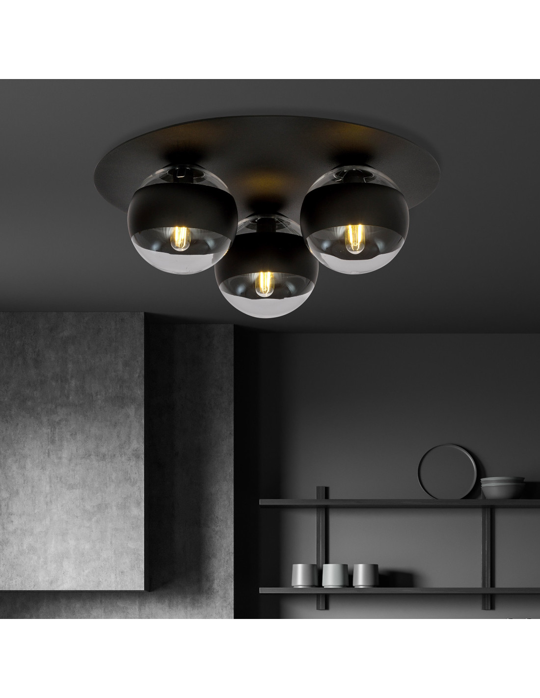 Plafon SOLAR to nowoczesny design z nutą przemysłowego charakteru. Wykonany z wysokiej jakości materiałów, takich jak metal i szkło, gwarantuje nie tylko estetykę, ale także trwałość. Jego solidna konstrukcja zapewnia długotrwałe użytkowanie, co czyni go inwestycją na lata. Dodatkowo, klasyczna kolorystyka w odcieniach czarnego i bezbarwnego harmonijnie współgra z innymi elementami wystroju.