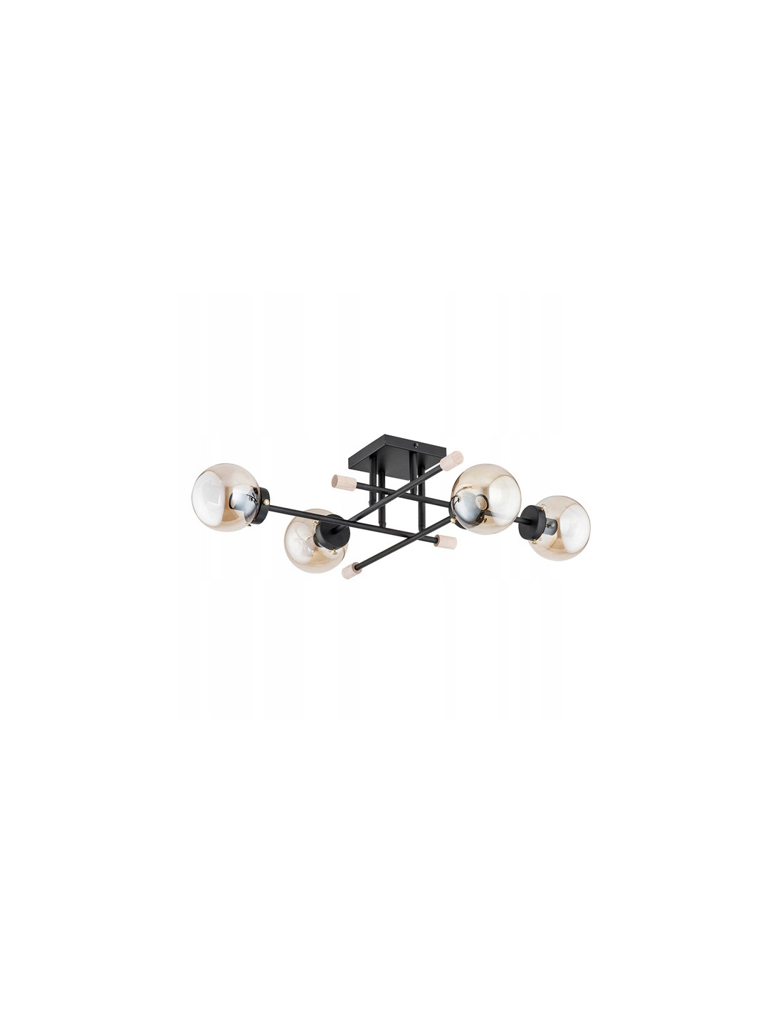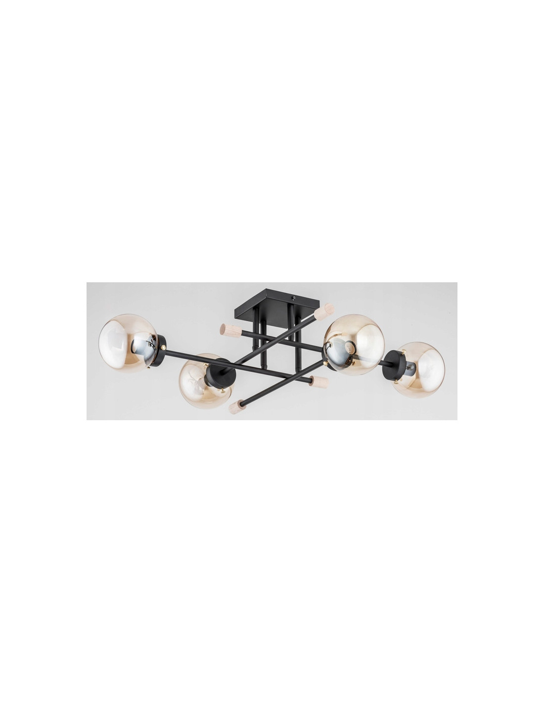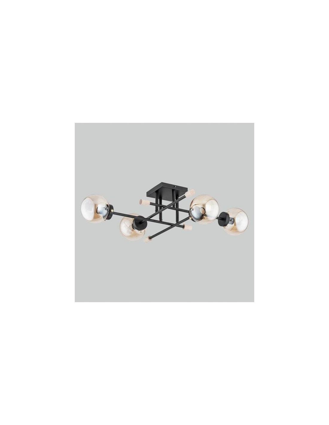 Dzięki czarnej kolorystyce oraz złotym akcentom, lampa ta wprowadza elegancję i charakter do przestrzeni. Klosze wykonane z szkła gwarantują nie tylko nowoczesny wygląd, ale również optymalne rozpraszanie światła. Lampa wyposażona jest w cztery punkty świetlne, co pozwala na dostosowanie oświetlenia do indywidualnych potrzeb.