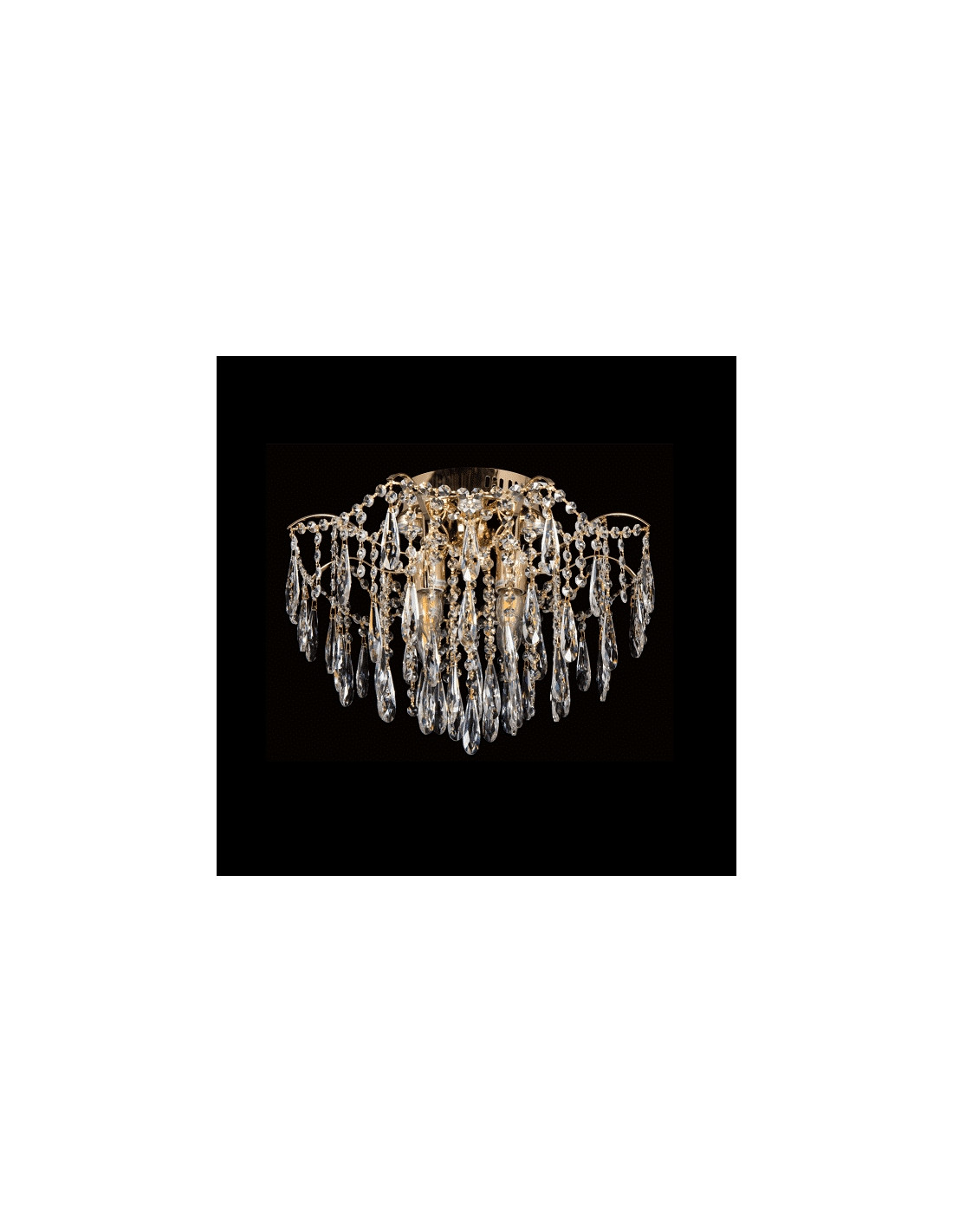 Lampa jest zaprojektowana z myślą o doświetleniu dużych przestrzeni, a kryształowe detale w połączeniu z metalową konstrukcją w kolorze złota nadają jej niepowtarzalny charakter. Dzięki zastosowaniu czterech punktów świetlnych na źródło E27, plafon zapewnia równomierne oświetlenie oraz tworzy efekty świetlne, które wzbogacają atmosferę w każdym pomieszczeniu.