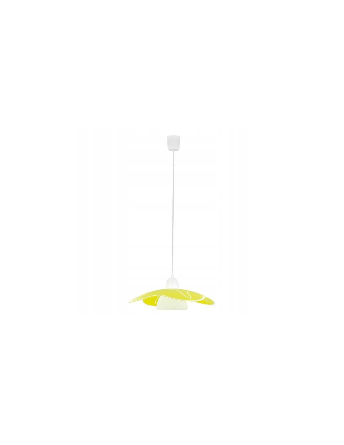 Produkt wykonany jest z lakierowanego szkła oraz solidnego metalu, co gwarantuje jego trwałość i estetyczny wygląd. Połączenie kolorów – białego oraz żółtego – nadaje wnętrzu przytulności, a lampa doskonale komponuje się z różnorodnymi meblami, tworząc harmonijną całość. Jest idealna do użytku w różnych pomieszczeniach, takich jak: