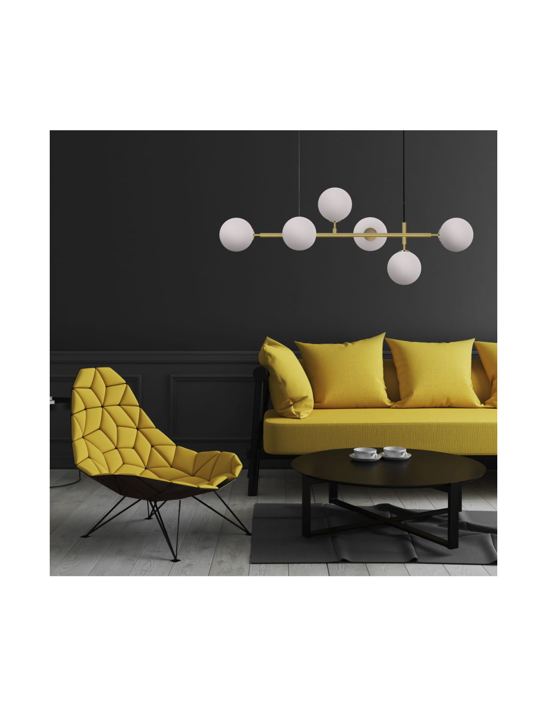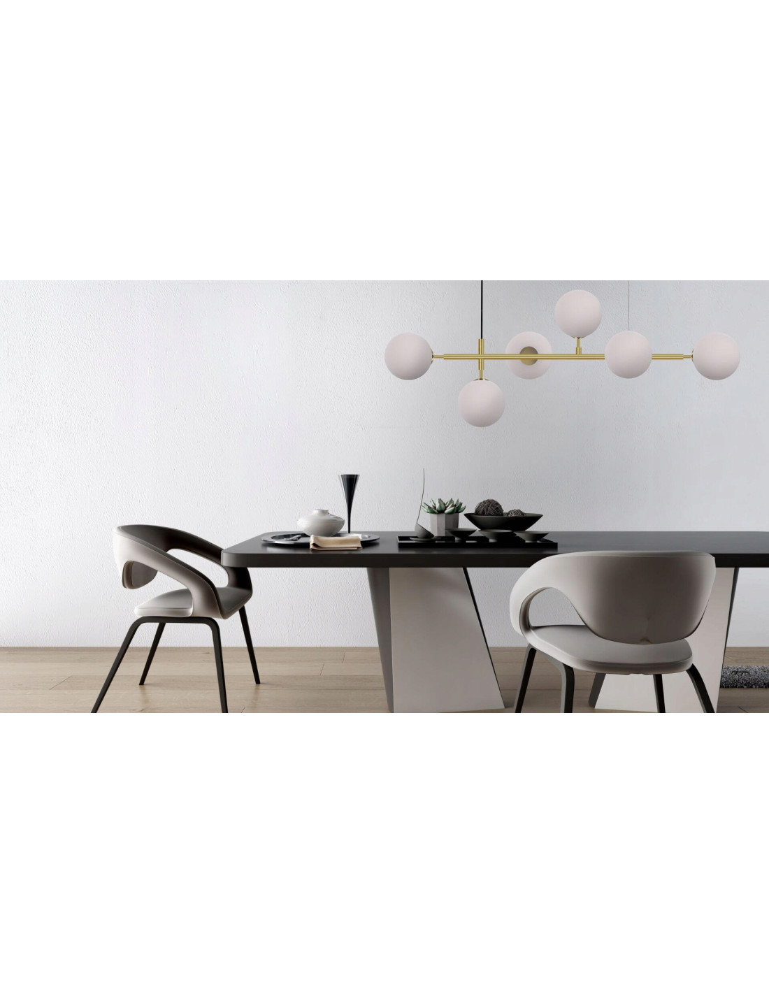 Charakterystyczną cechą lampy są sześć białych, szklanych kloszy w kształcie kul, które są rozmieszczone w różnych kierunkach. Taki unikalny design sprawia, że lampa skutecznie oświetla każdy zakątek pomieszczenia, tworząc przyjemną i przytulną atmosferę. Bez względu на aranżację wnętrza, lampa Alisa doskonale będzie współgrała z różnorodnymi kolorystykami ścian i mebli.