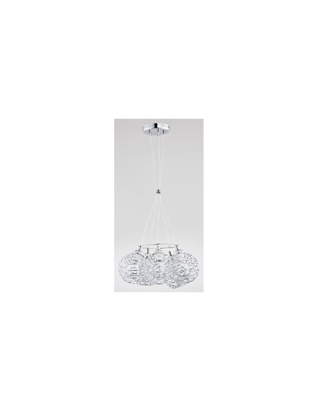 AMASO CHROM to lampa, która wymaga zastosowania pięciu żarówek E27 (brak w zestawie), co pozwala na dostosowanie poziomu oświetlenia do indywidualnych potrzeb użytkowników. Dzięki możliwości użycia żarówek o maksymalnej mocy 60 W każda, lampę można dostosować, by uzyskać zarówno nastrojowe, jak i bardziej intensywne oświetlenie. Zasilanie lampy jest sieciowe, co czyni ją wszechstronnym wyborem do wielu pomieszczeń.