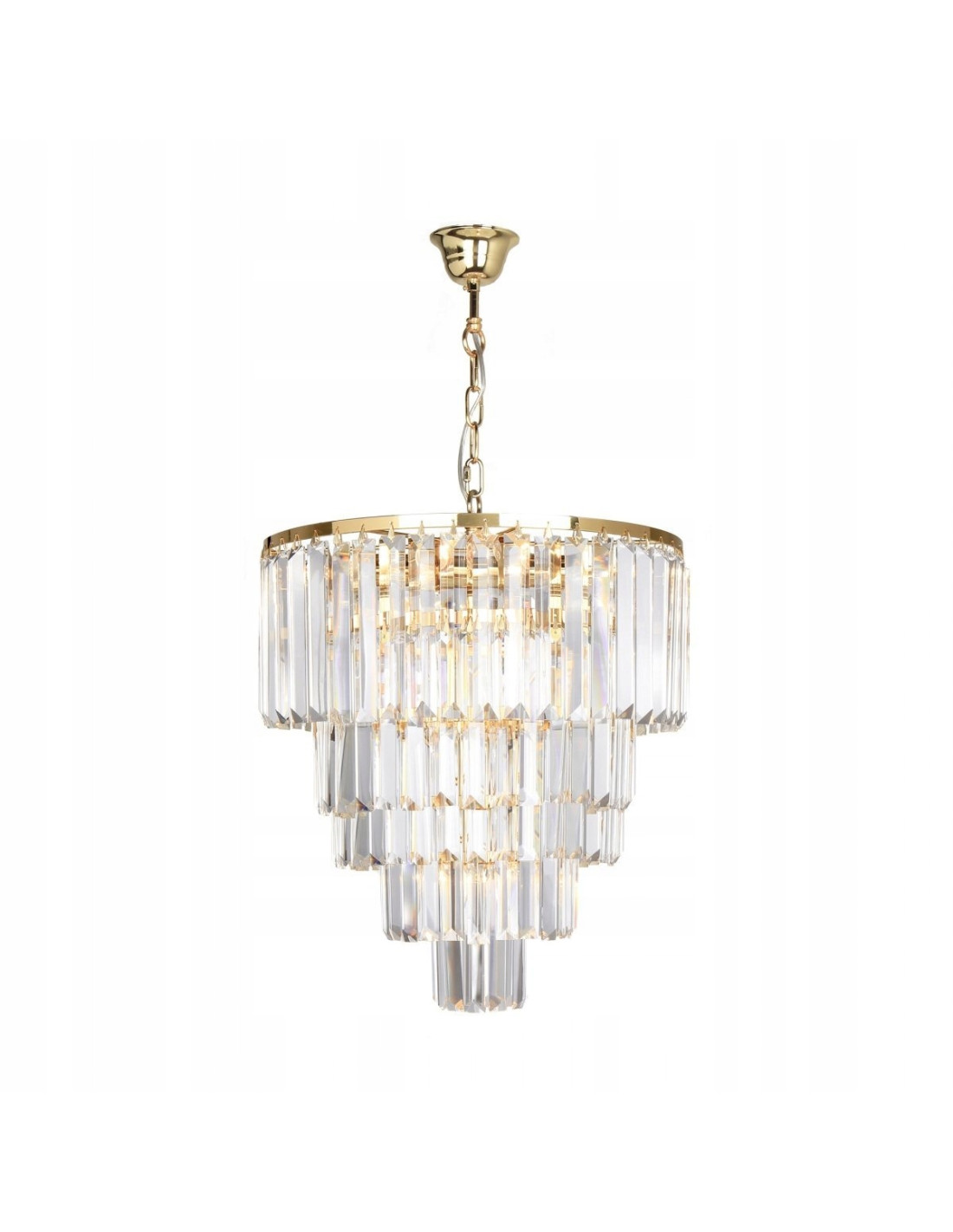 Wykonana z najwyższej jakości szkła i metalu, lampa AMEDEO prezentuje się niezwykle efektownie, co podkreśla jej złote wykończenie. Długie kryształowe elementy, które tworzą kaskadową formę, doskonale odbijają światło, tworząc w pomieszczeniu niezrównaną iluminację. Dzięki temu staje się nie tylko źródłem światła, ale także stylowym dodatkiem dekoracyjnym.