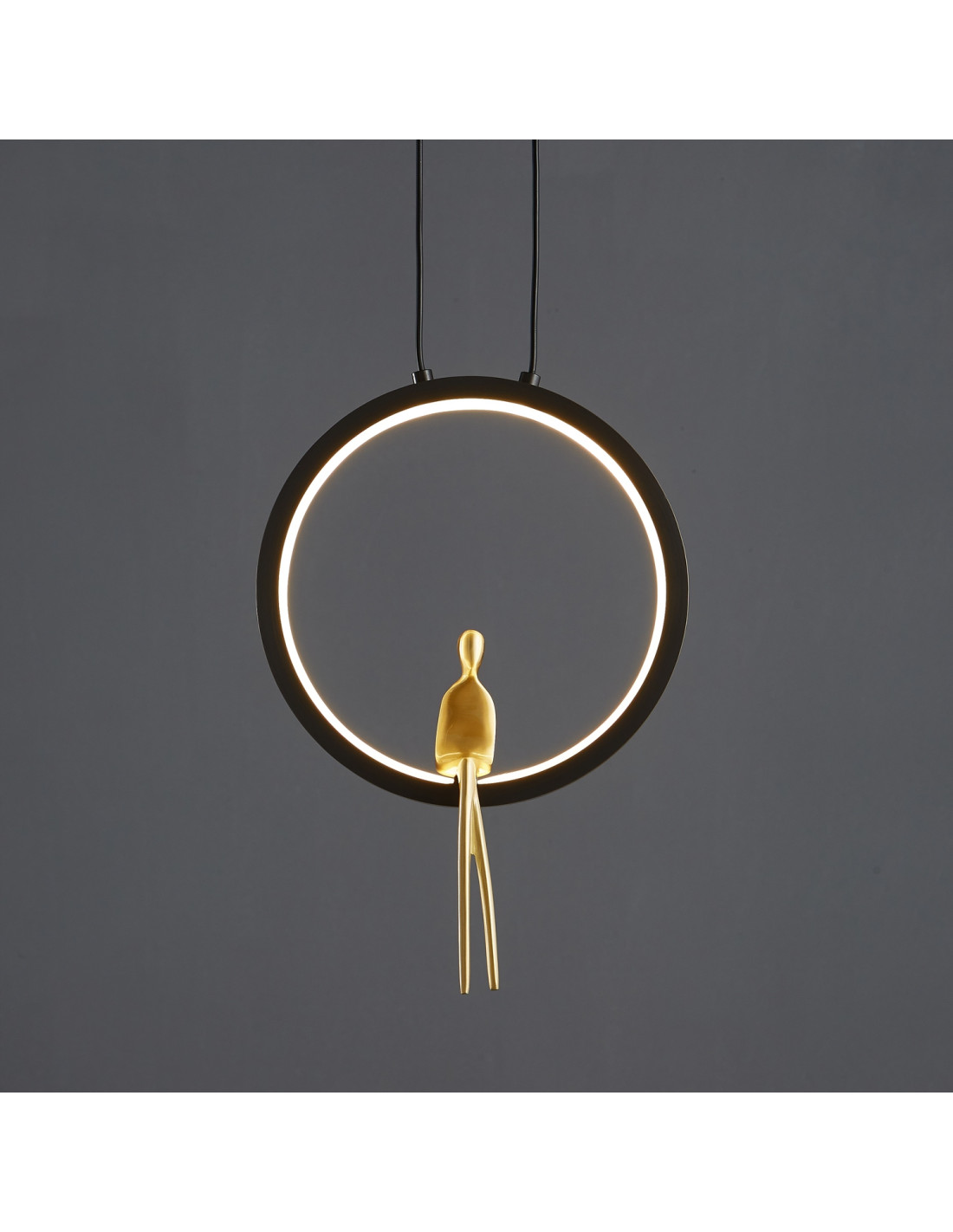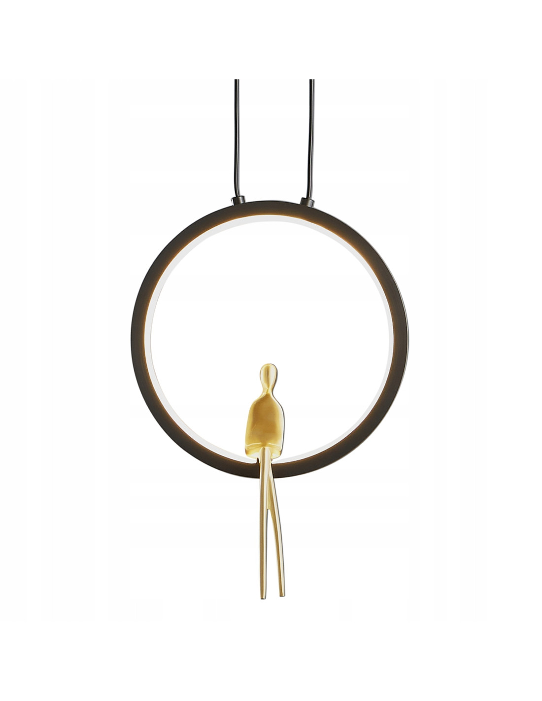 Lampa wisząca AMICI to wyjątkowy element oświetleniowy, który doda charakteru każdemu wnętrzu. Wykonana w całości ze s szczotkowanego mosiądzu w eleganckim złotym kolorze, ta lampa łączy w sobie nowoczesny design z klasycznymi akcentami. Jej rzeźbiarska postać z mosiądzu, przedstawiająca siedzącego ludka, nadaje lampie niepowtarzalny wizualny efekt, przyciągając wzrok i inspirując kreatywnie.