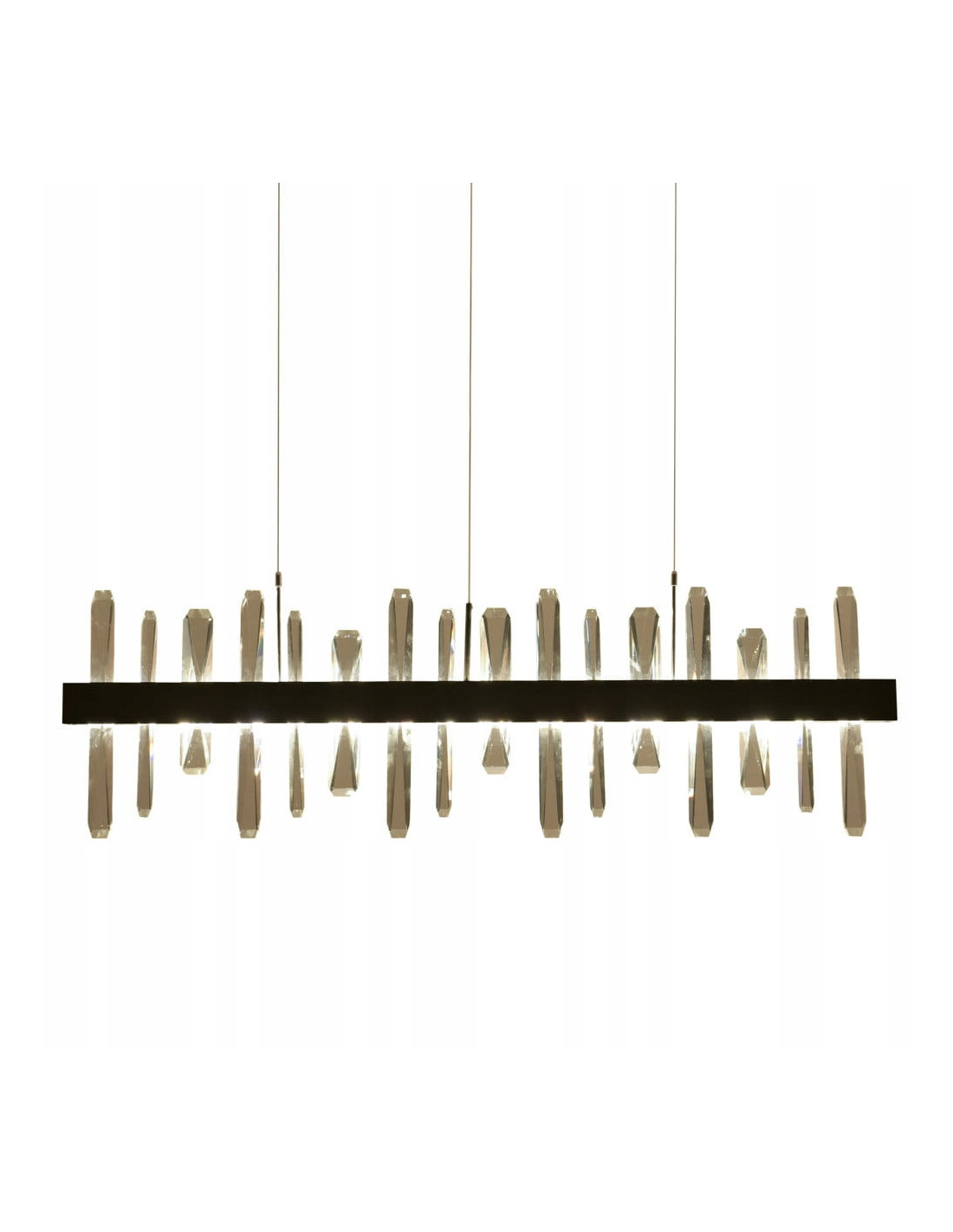 Lampa wisząca ARCTIC to idealny wybór dla osób poszukujących eleganckiego oraz nowoczesnego oświetlenia do swojego jadalni czy kuchni. Jej długa kryształowa listwa wykonana jest z metalu w kolorze szczotkowanej czerni, co nadaje lampie niepowtarzalny charakter. Wypełniona kryształami szklanymi K9, lampa emanuje luksusem, a zastosowanie źródła światła LED podkreśla jej blask i tworzy wspaniałe efekty świetlne w każdym wnętrzu.