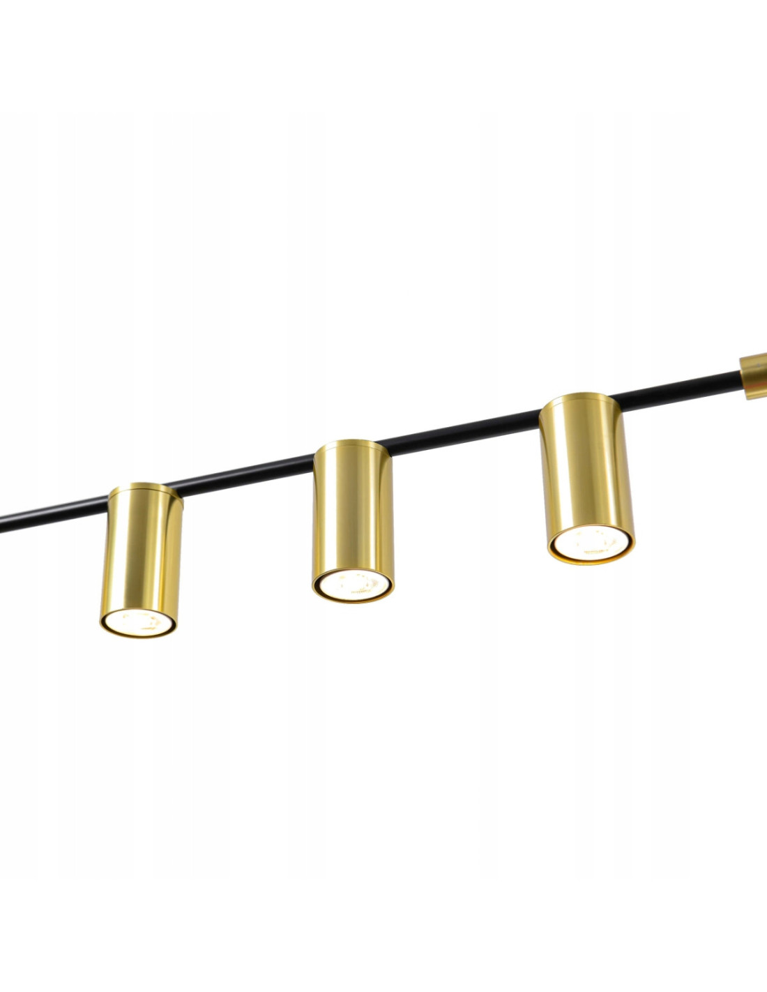 Złota konstrukcja kloszy emanuje luksusem, a ich błyszcząca powierzchnia dodaje świetlistości i elegancji. Czarne, matowe wykończenie stelaża oraz podsufitki stanowi efektowne tło dla złotych kloszy, tworząc harmonijną całość. Dzięki temu lampa staje się centralnym punktem pomieszczenia, przyciągając wzrok.