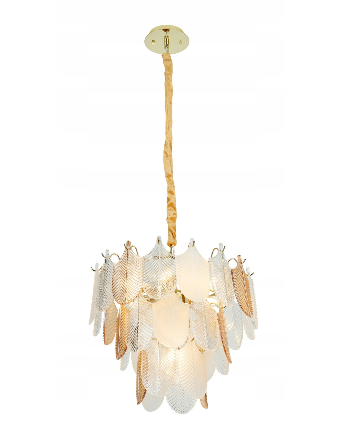 W lampie z serii Arwena wykorzystano złoto-kremowe liście, które w połączeniu ze szklanym kloszem dają efekt naturalności oraz elegancji. Dzięki tym starannie dobranym detalom, lampa nie tylko rozświetli przestrzeń, ale także stanie się dekoracją, która zachwyci gości i domowników. Jej majestatyczne formy i wysoka jakość wykonania sprawiają, że jest idealnym wyborem dla osób pragnących dodać swojemu wnętrzu luksusowego charakteru.