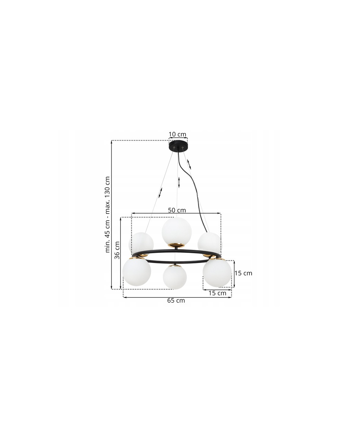 O średnicy 65 cm i regulowanej wysokości od 45 do 130 cm, AURA 60W staje się centralnym punktem każdego pomieszczenia. Doskonale nadaje się do oświetlenia stołu w jadalni, wyspy w kuchni lub jako atrakcja w salonie nad kanapą. Dzięki zastosowaniu technologii E14, lampę można dostosować do różnorodnych stylów i preferencji oświetleniowych, wybierając odpowiednie źródło światła.