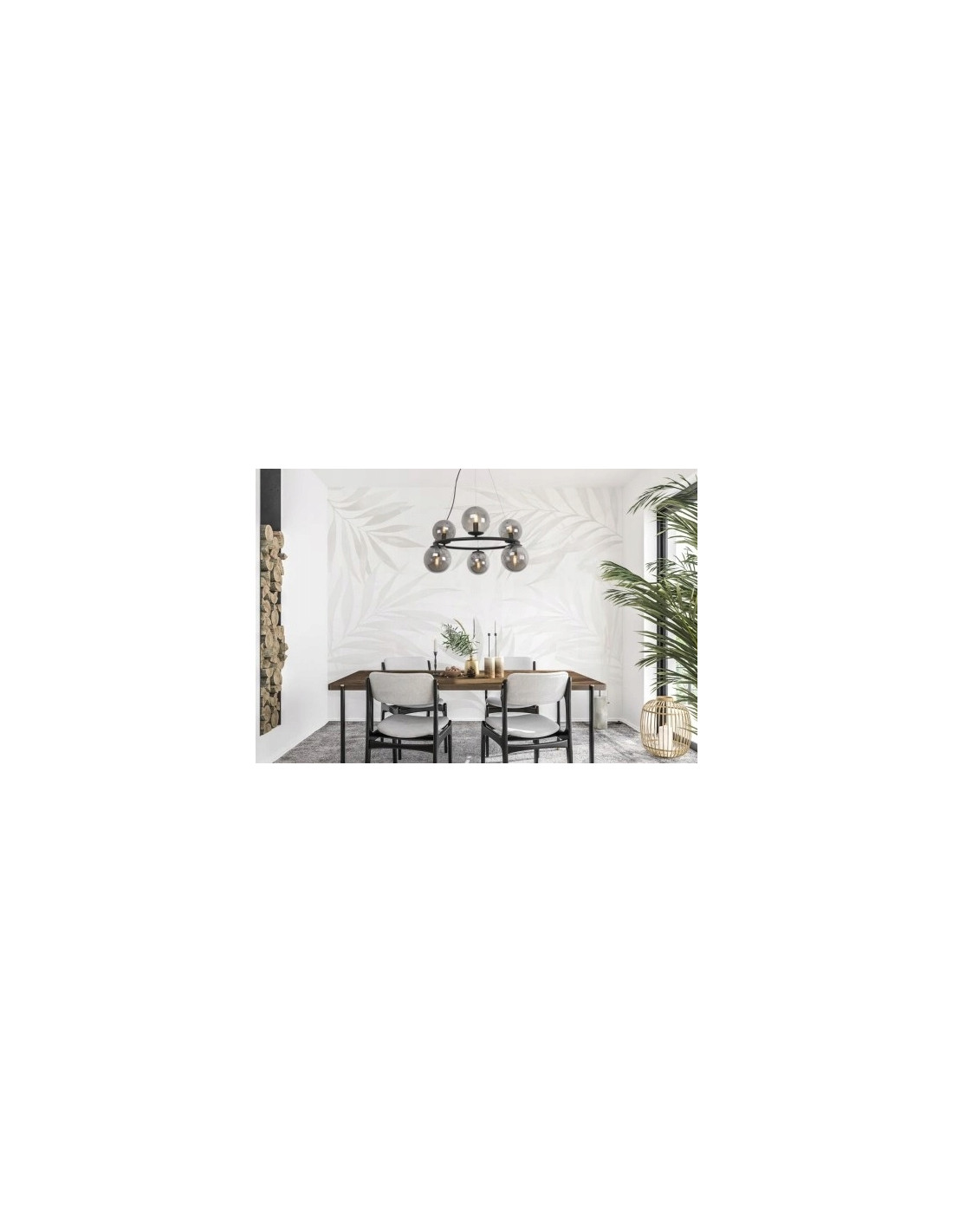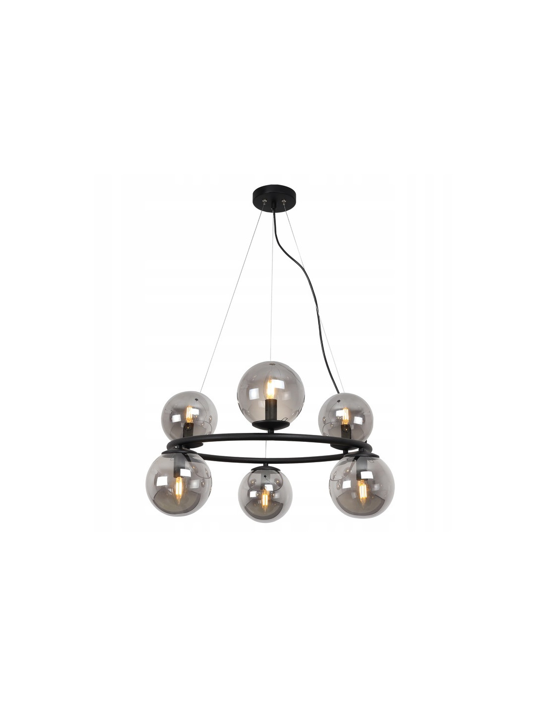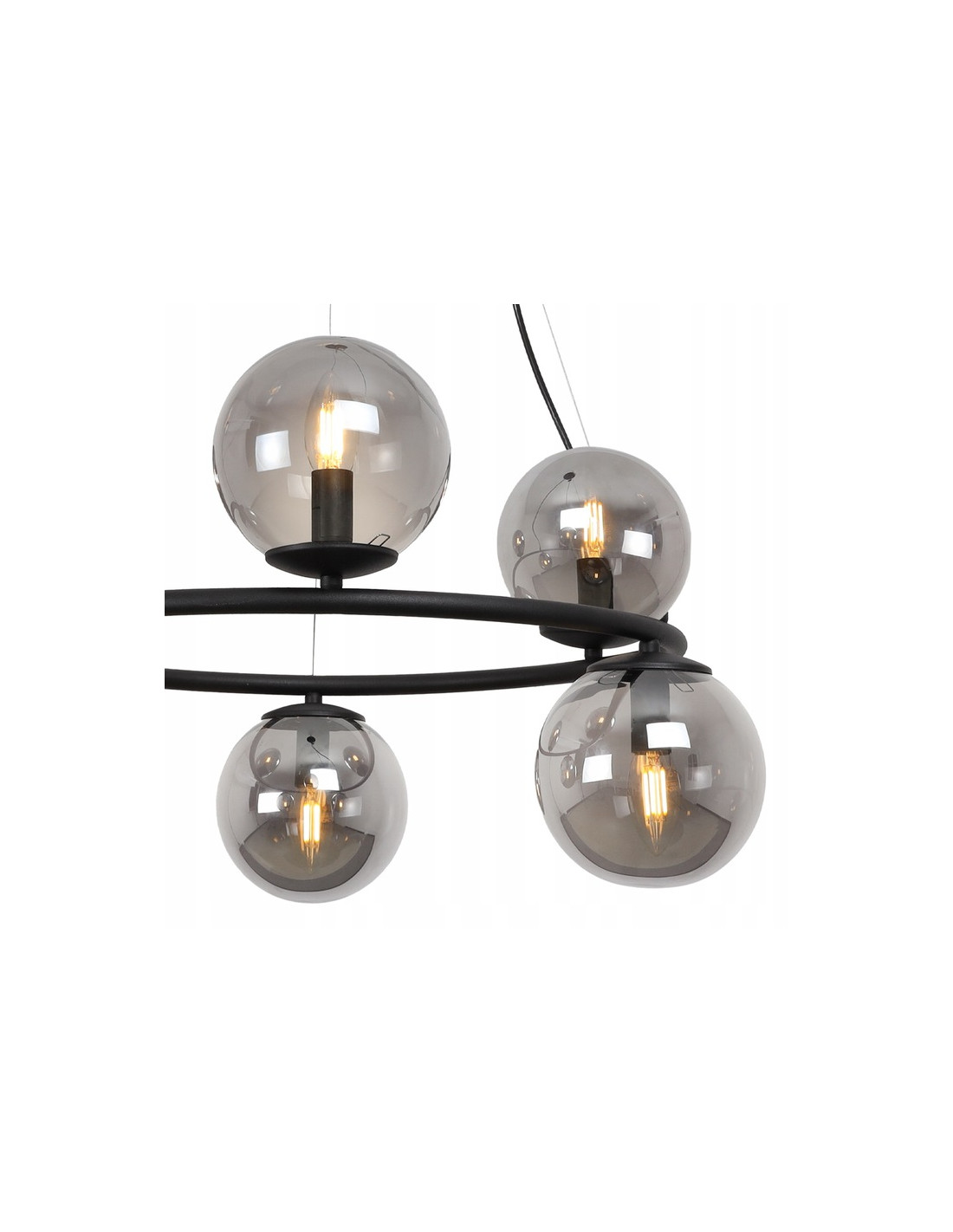 Odkryj lampa pierścieniową ze szklanymi kulami w stylu pałacowym AURA, która łączy w sobie elegancję oraz nowoczesność. Jej modna konstrukcja z charakterystycznym kształtem pierścienia wyróżnia się sześcioma szklanymi kloszami w głębokim grafitowym kolorze, umieszczonymi na stylowej czarnej listwie. To doskonała propozycja dla osób poszukujących wyjątkowego oświetlenia do wnętrz w stylu glamour lub nowoczesnym.