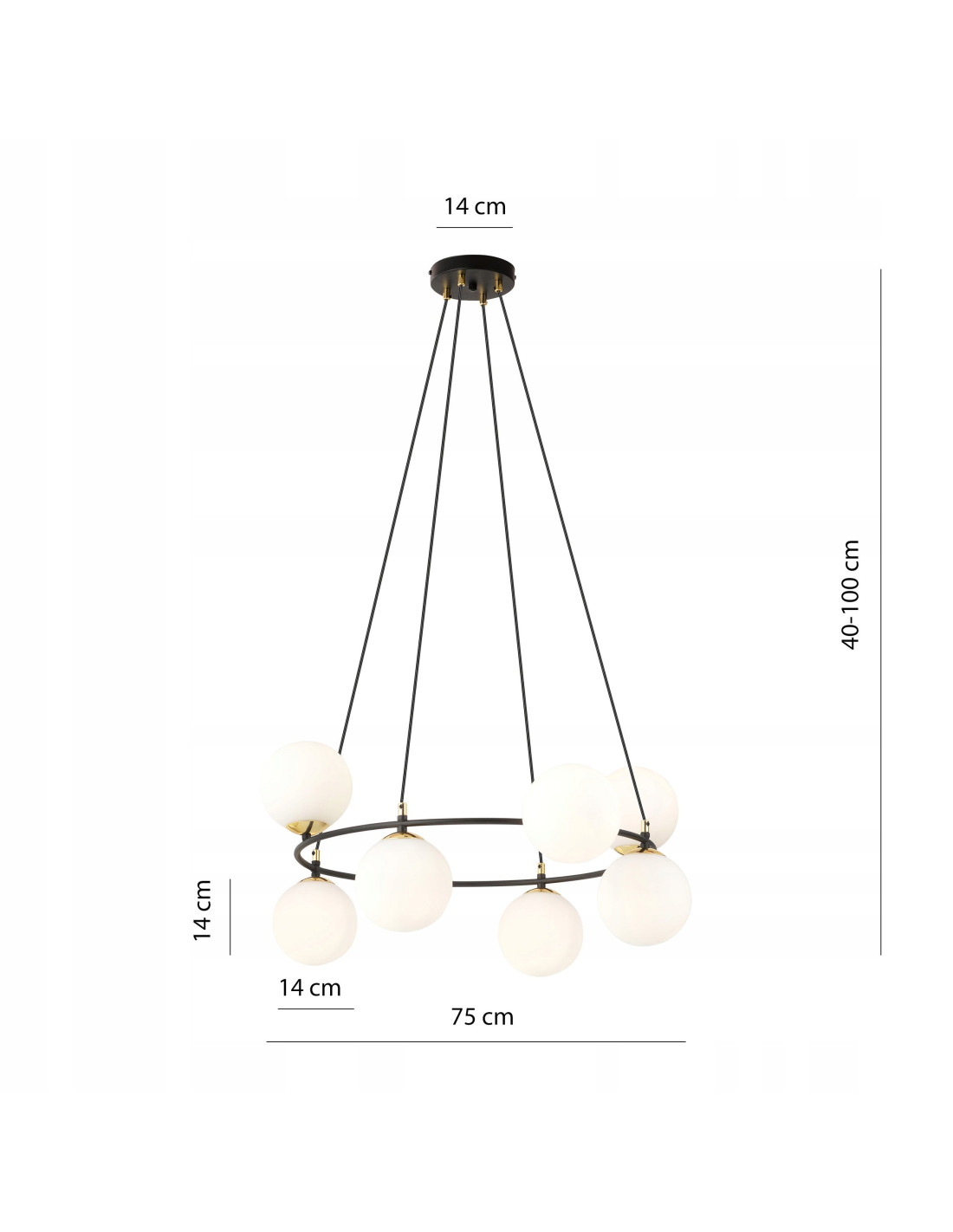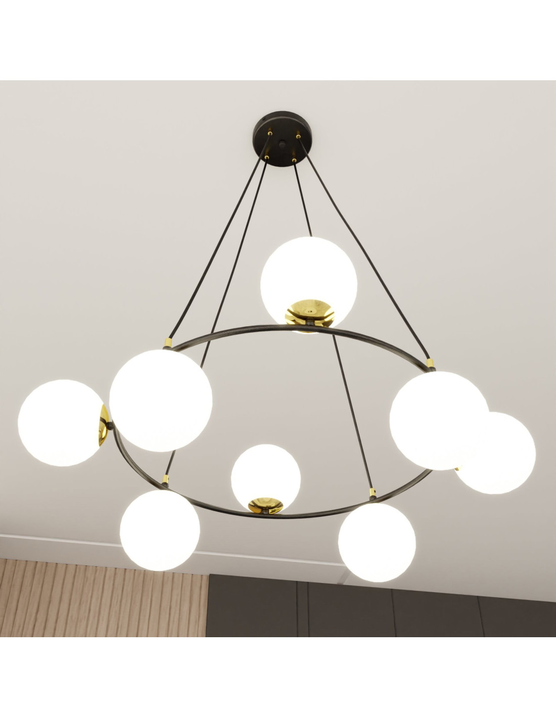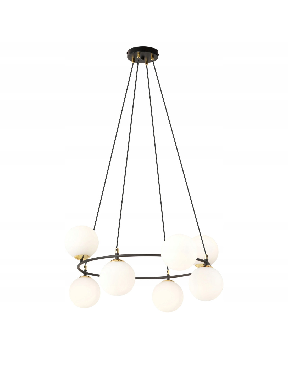 Odkryj niesamowitą lampę AZURA, która harmonijnie łączy nowoczesny design z elegancją, idealnie wpasowując się w różnorodne aranżacje wnętrz. Ta wisząca lampa, z osiem białymi kloszami i złotymi elementami, stanowi efektowny akcent w każdym pomieszczeniu. Jej minimalistyczna forma w połączeniu z industrialnym stylem sprawia, że będzie doskonałym dopełnieniem zarówno nowoczesnego, jak i klasycznego wystroju.
