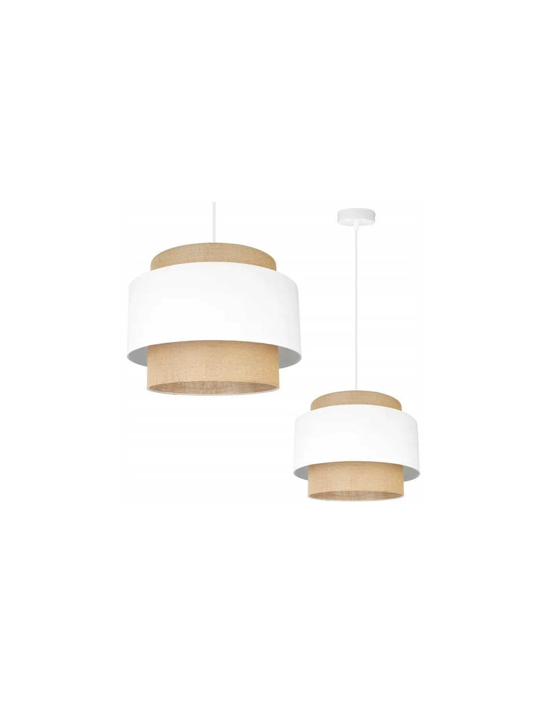 Wykonana z juty, lampa jest dostępna w stonowanej kolorystyce biało-beżowej, która doskonale współgra z różnymi odcieniami wnętrz. Dzięki trzem abażurom, lampa emituje delikatne i przyjemne światło, które sprzyja relaksowi i tworzy sprzyjający klimat. Możliwość regulacji wysokości sprawia, że można ją dostosować do różnych przestrzeni, w tym salonu, sypialni czy jadalni.