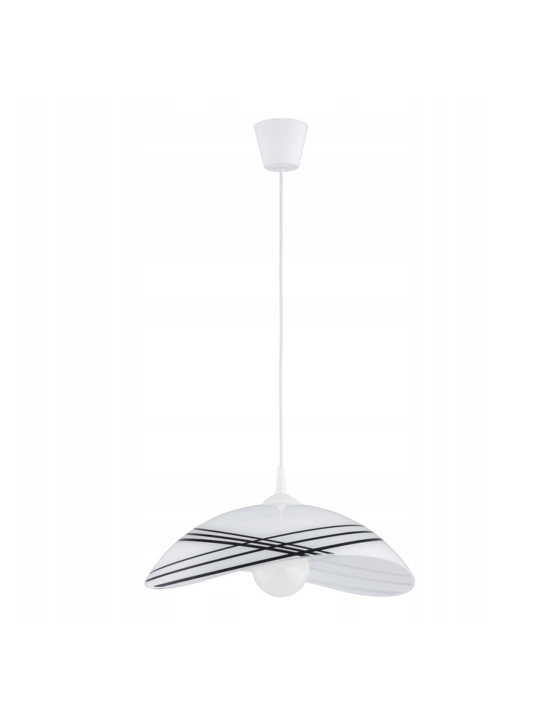 Lampa wisząca BRATEK CZARNO-BIAŁA to doskonały wybór dla osób poszukujących eleganckiego i nowoczesnego oświetlenia do swojego wnętrza. Wykonana z wysokiej jakości tworzywa sztucznego oraz szklanego klosza o średnicy 48 cm, ta lampa łączy w sobie estetykę i funkcjonalność, dodając charakteru każdemu pomieszczeniu.