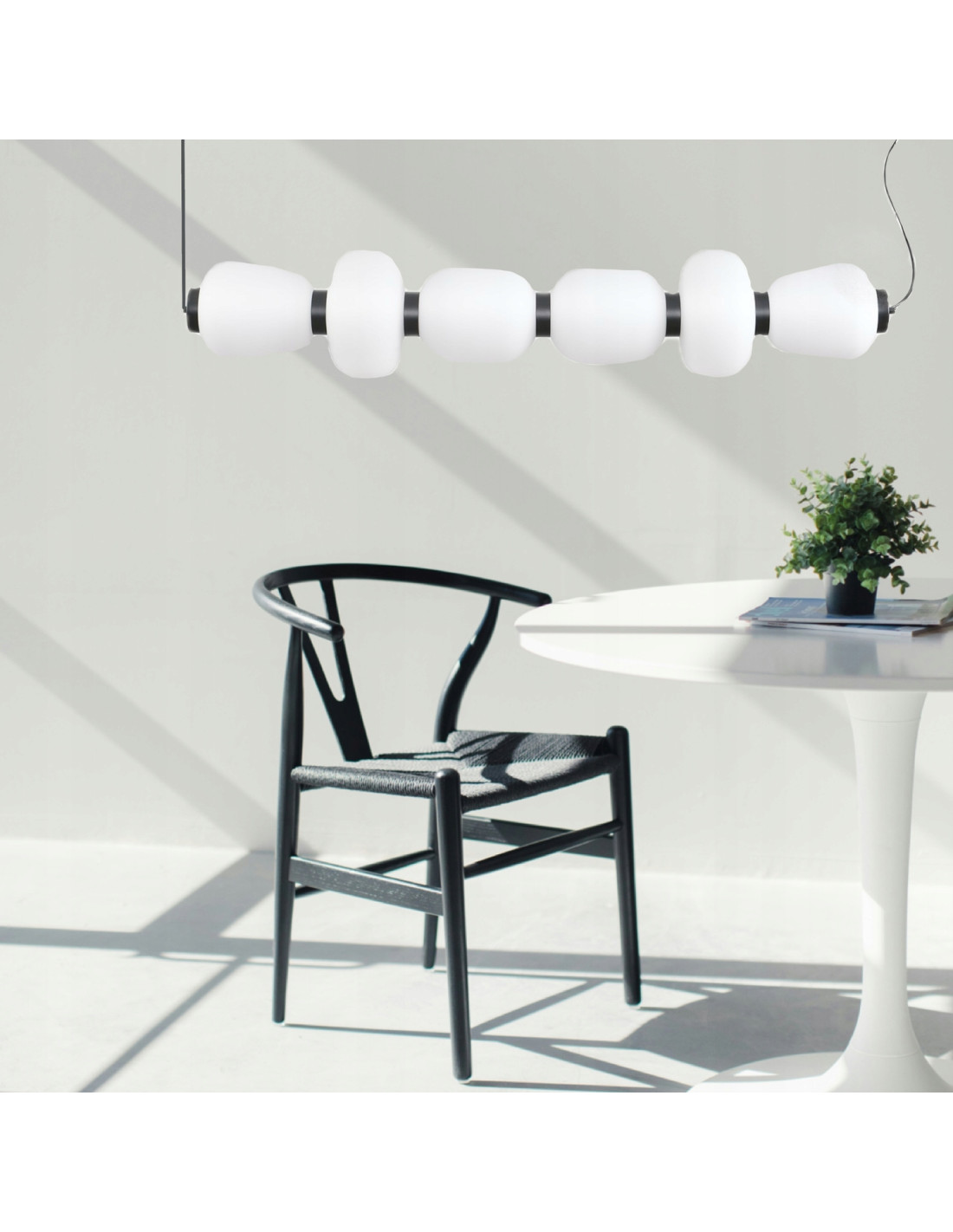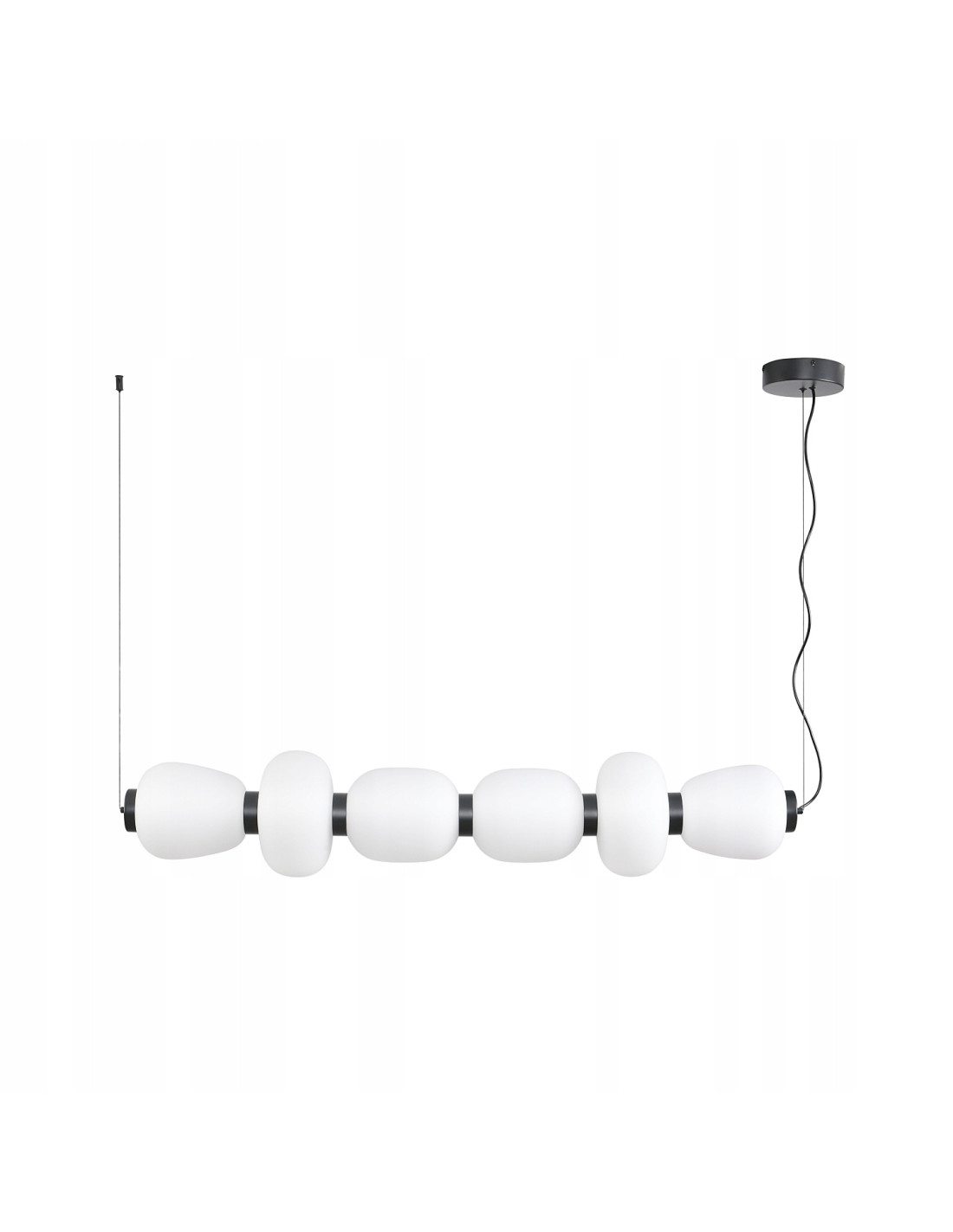 Przedstawiamy nowoczesną lampę wiszącą BRILLA, która łączy w sobie minimalistyczny design i funkcjonalność. Ta stylowa lampa z równoległą konstrukcją to idealny wybór dla osób, które cenią sobie elegancję i nieprzeciętny styl w aranżacji wnętrz. Model BRILLA składa się z szesnastu białych kloszy, które przypominają kształtem kamienie, i są połączone za pomocą czarnych metalowych pierścieni.