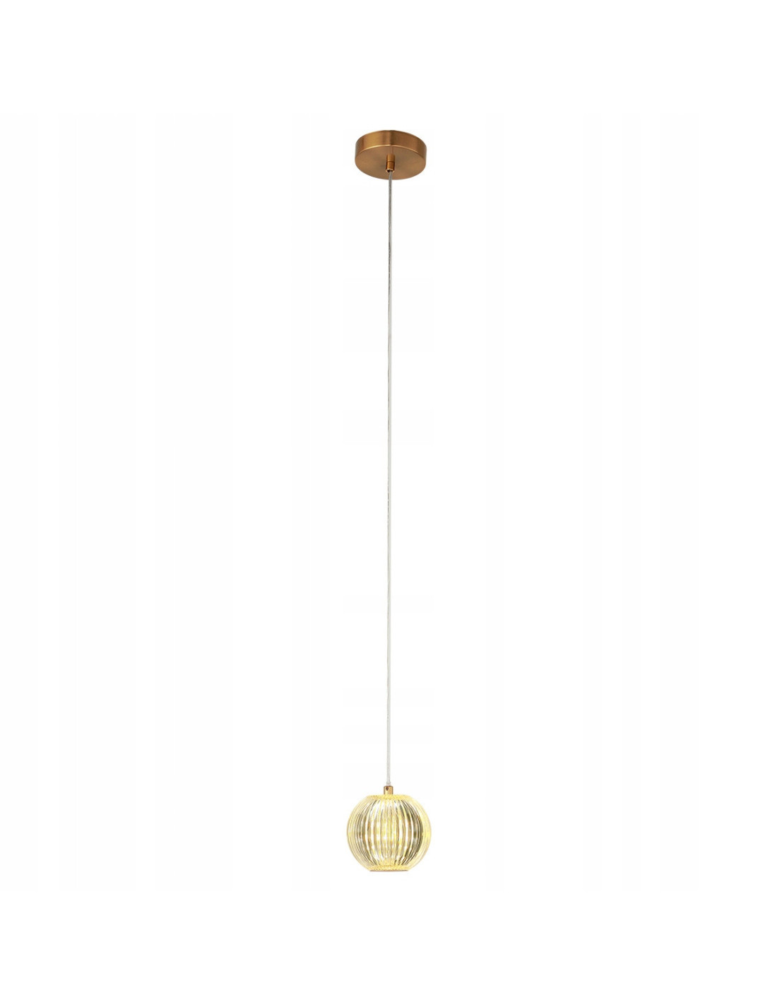 Wykonana z metalu w złotym kolorze oraz akrylowych kloszy z subtelnym żłobieniem, lampa wisząca Brillant 1 łączy nowoczesność z klasyką. Każdy detal został starannie przemyślany, co sprawia, że lampa prezentuje się stylowo i elegancko. Transparentny kabel nadaje całości lekkości, co pozwala na swobodne wkomponowanie jej w różne style aranżacyjne.
