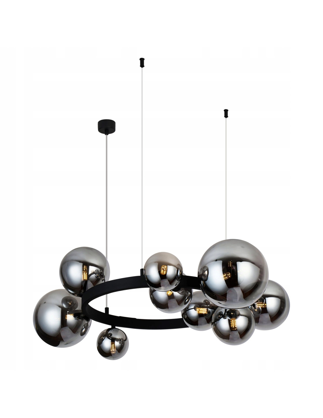 Odkryj nowoczesną lampę wiszącą Bubbles Round 10 BK, która doda elegancji i charakteru każdemu wnętrzu. Ta lampa, wykonana w czarnym macie, łączy w sobie minimalistyczny design z funkcjonalnością, co czyni ją idealnym wyborem do różnorodnych przestrzeni. Dzięki 10 punktom świetlnym na gwint G9, zapewnia doskonałe doświetlenie, idealne do większych pomieszczeń, takich jak salon, jadalnia czy nowoczesne biuro.