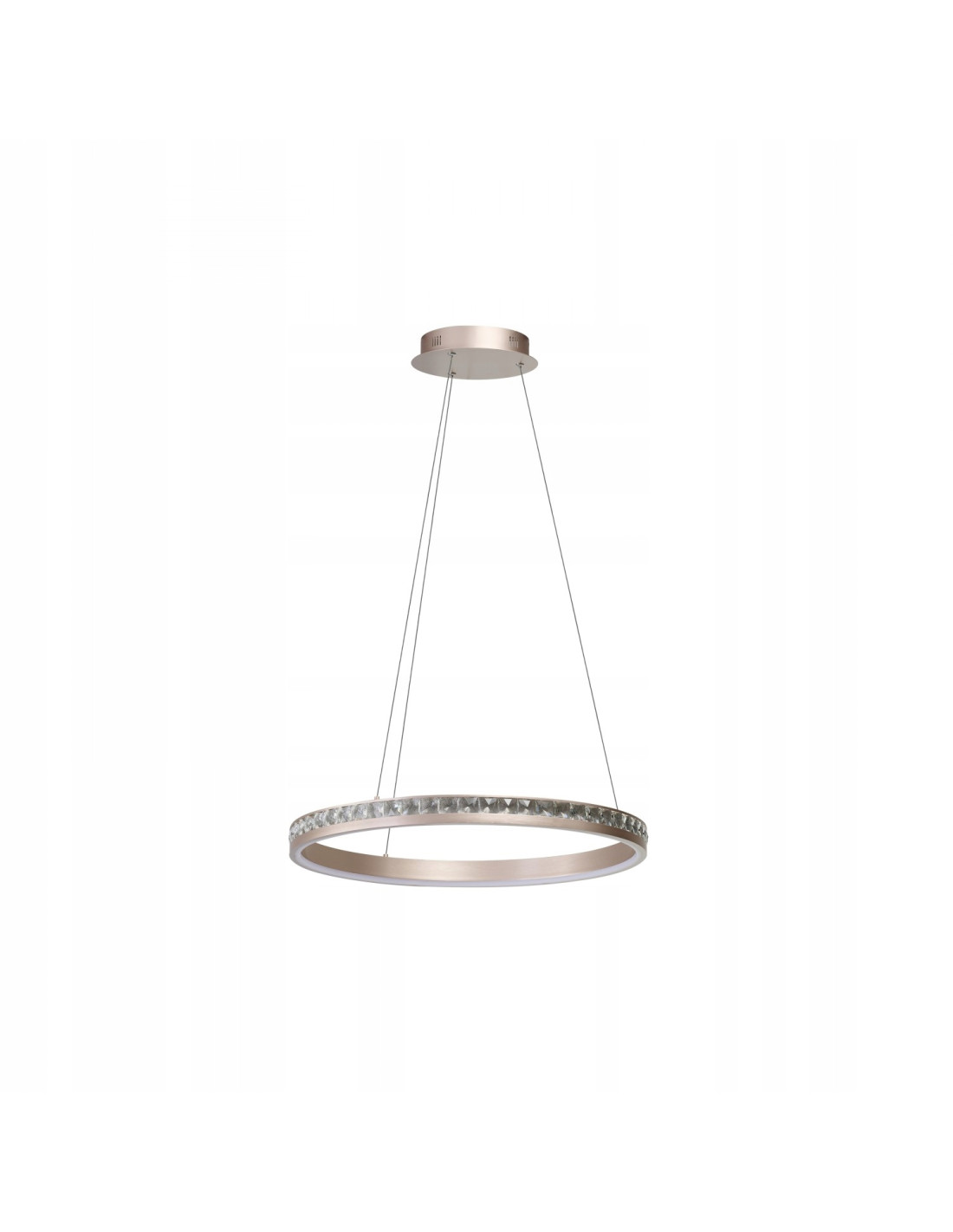 Lampa wisząca CAMELIA LED 60 cm w kolorze różowego złota to elegancki i nowoczesny element oświetlenia, zaprojektowany z myślą o wnętrzach w stylu Glamour oraz Modern Classic. Połączenie aluminium z dekoracyjnymi kryształami nadaje oprawie luksusowy charakter, który doskonale sprawdzi się nad stołem w jadalni, w salonie lub w reprezentacyjnym przedpokoju. Dzięki subtelnej kolorystyce i okrągłemu kształtowi klosza lampa harmonijnie współgra z różnymi aranżacjami wnętrz.
