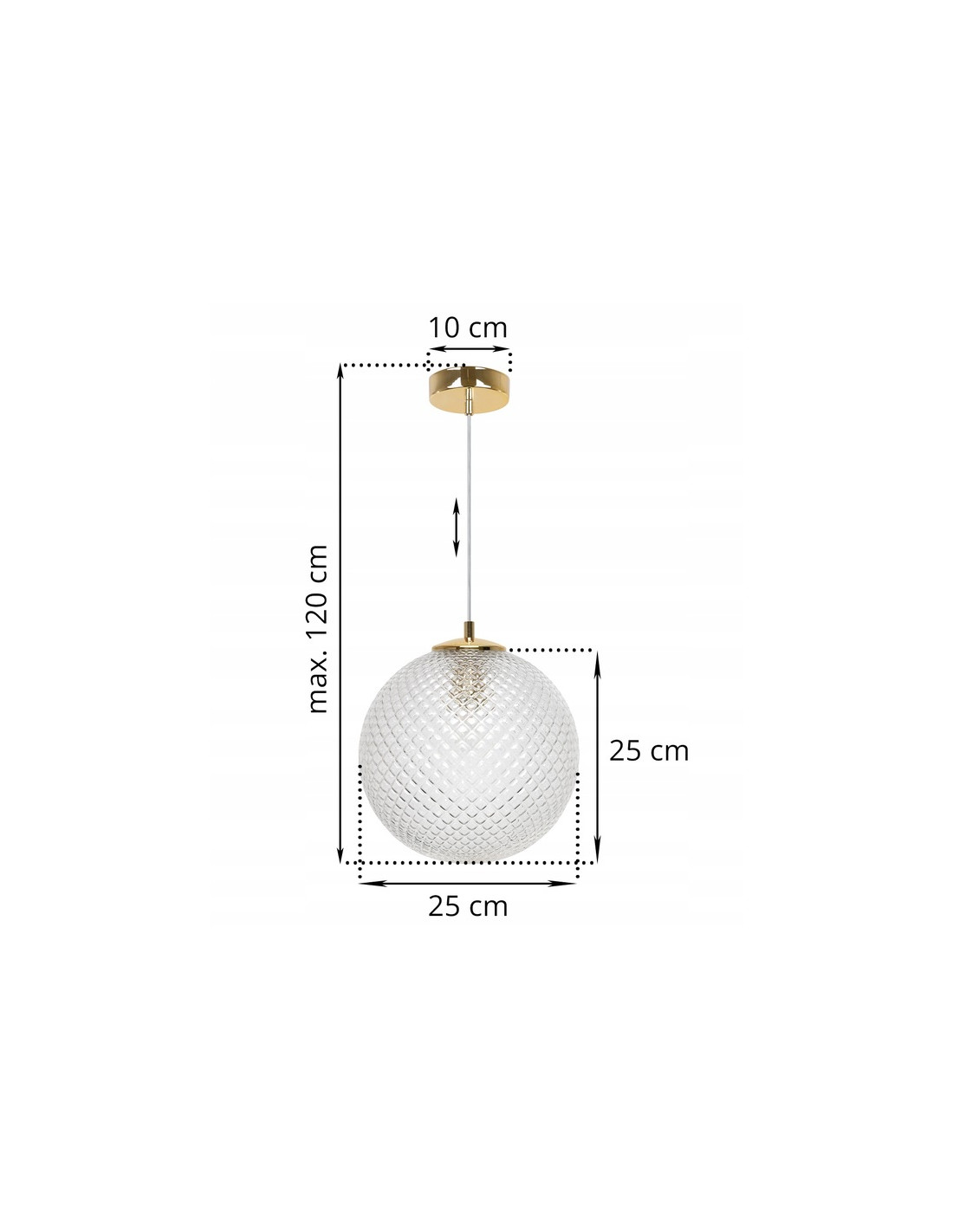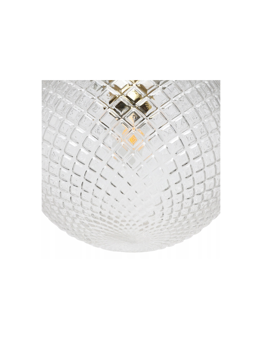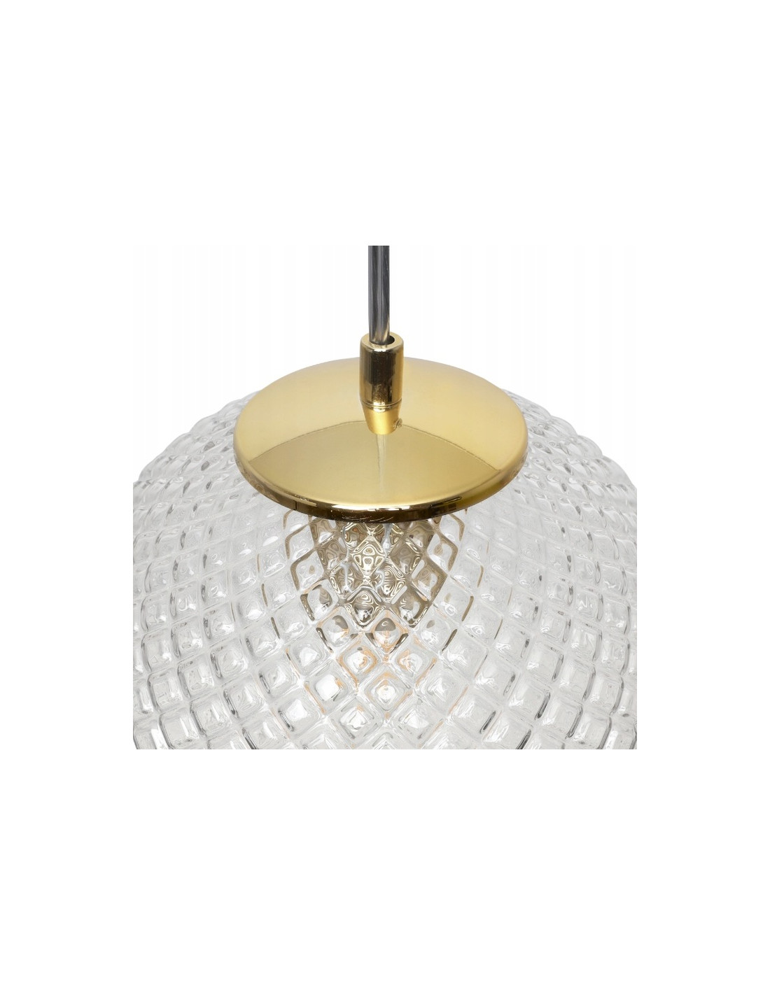 Stylowa konstrukcja lampy wykonana jest z metalu w kolorze złotym, co dodaje jej luksusowego charakteru. W połączeniu z przezroczystym kloszem, lampa staje się nie tylko źródłem światła, ale także efektowną dekoracją. Kryształowe szkło o trójwymiarowej strukturze sprawia, że światło refrakcyjne tworzy wyjątkową, przyjemną atmosferę, idealną dla spotkań towarzyskich czy chwili relaksu.