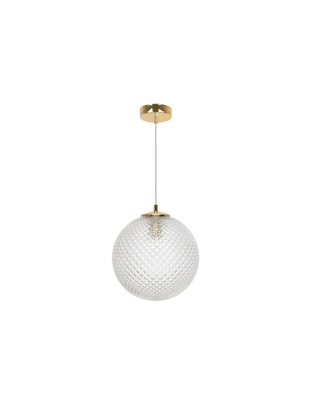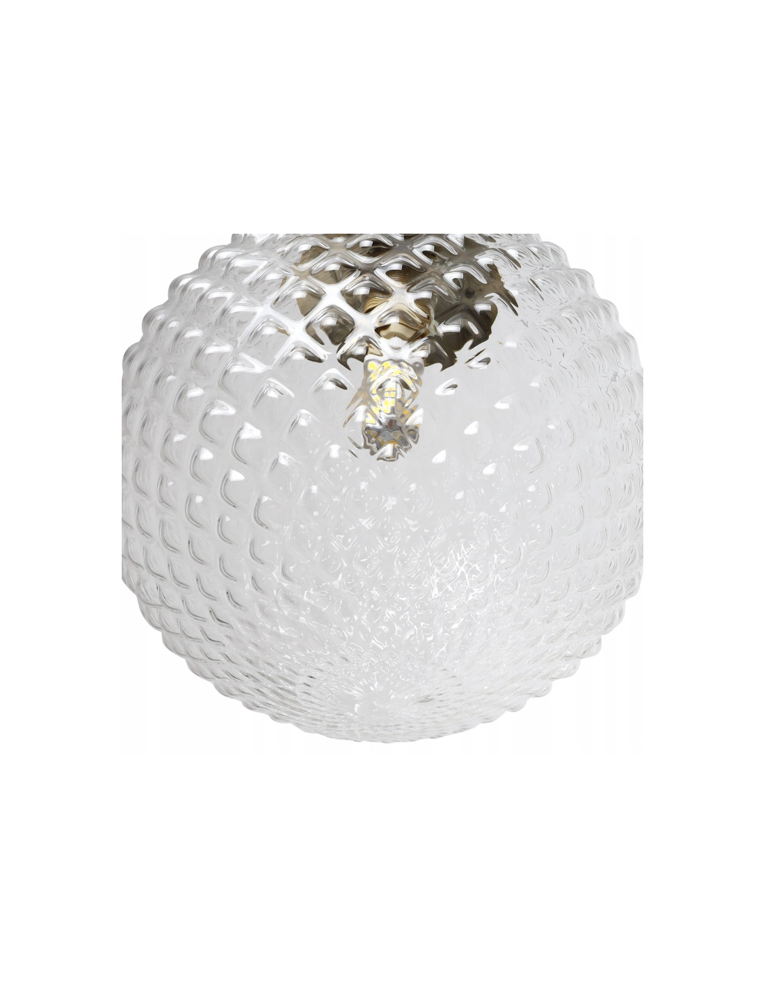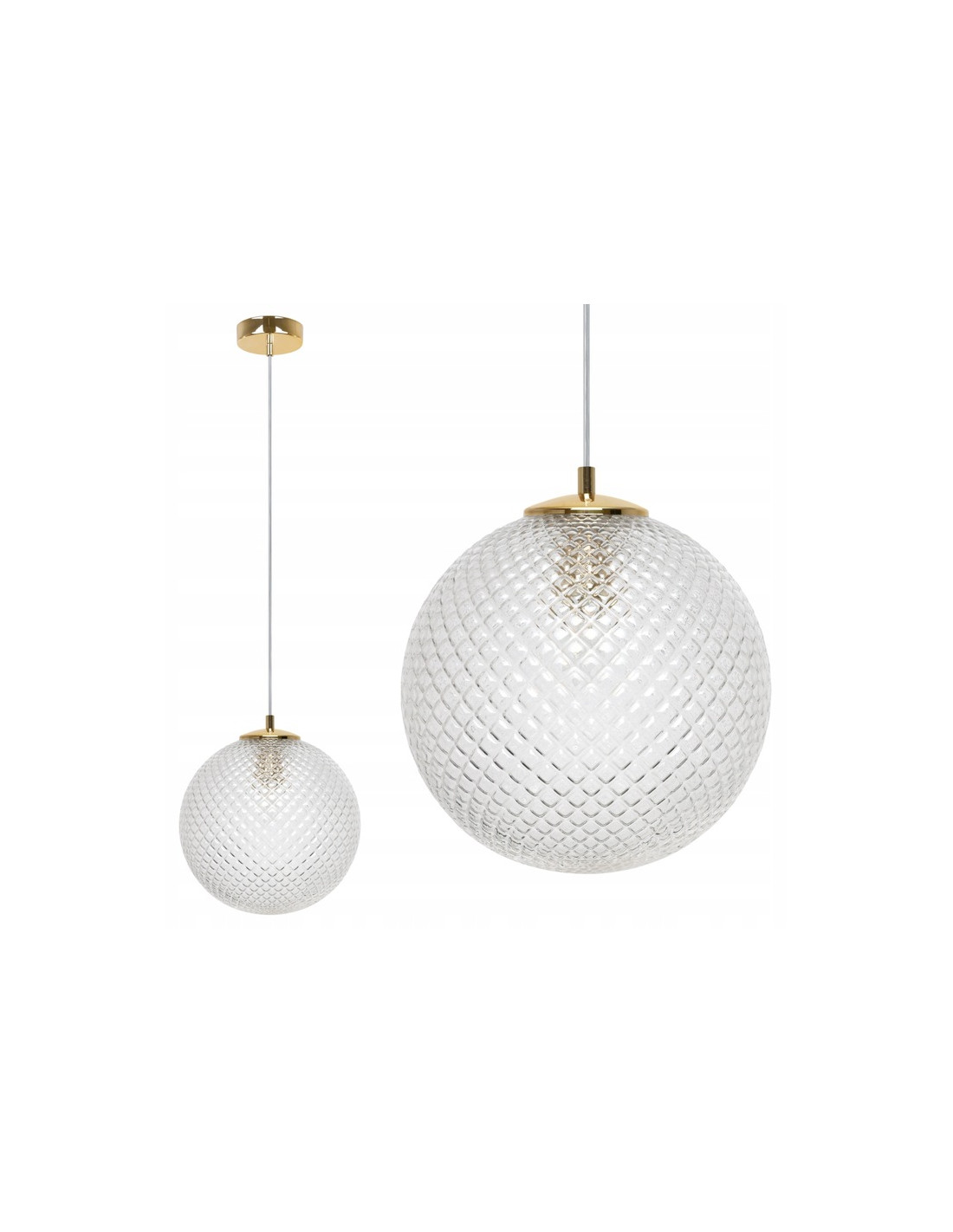 Stylowa konstrukcja lampy wykonana jest z metalu w kolorze złotym, co dodaje jej luksusowego charakteru. W połączeniu z przezroczystym kloszem, lampa staje się nie tylko źródłem światła, ale także efektowną dekoracją. Kryształowe szkło o trójwymiarowej strukturze sprawia, że światło refrakcyjne tworzy wyjątkową, przyjemną atmosferę, idealną dla spotkań towarzyskich czy chwili relaksu.