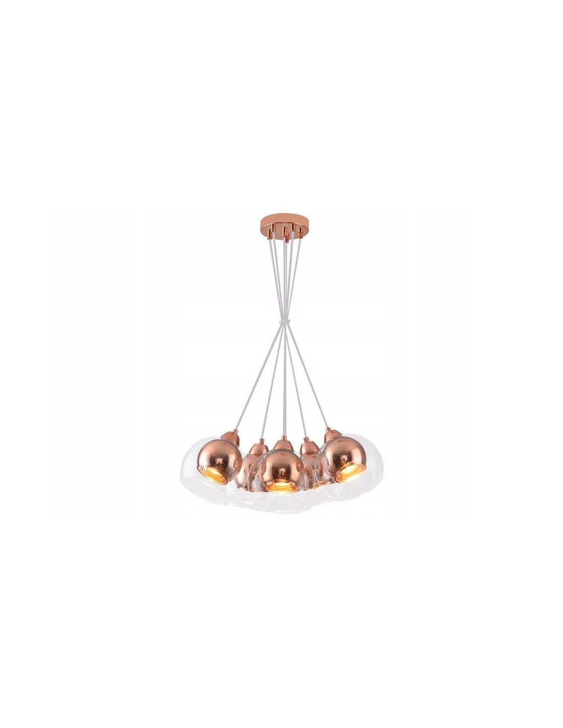 Różowo złota lampa wisząca z 6 kloszami Clara to doskonałe połączenie nowoczesności i vintage'owego uroku, które wnosi do każdego wnętrza wyjątkowy styl i elegancję. Jej metalowa konstrukcja w odcieniu różowego złota nie tylko przyciąga wzrok, ale także emanuje lekkością i finezją. Dzięki swojemu niepowtarzalnemu designowi, lampa idealnie komponuje się w salonach, jadalniach oraz sypialniach, nadając im unikatowy charakter.