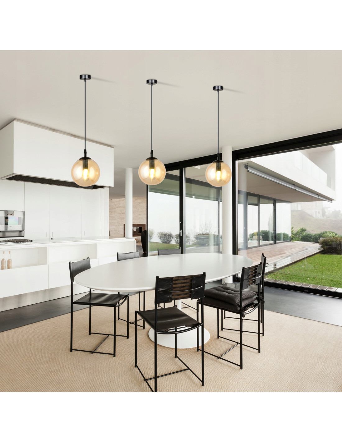 Klosz lampy stworzony jest z wysokiej jakości szkła, którego miodowy odcień efektywnie diffuzuje światło, tworząc przytulną atmosferę. Dzięki metalowej konstrukcji w kolorze czarnym, lampa zyskuje na trwałości oraz elegancji. Minimalistyczny design sprawia, że lampę można z łatwością wkomponować w różnorodne aranżacje – od nowoczesnych po klasyczne.