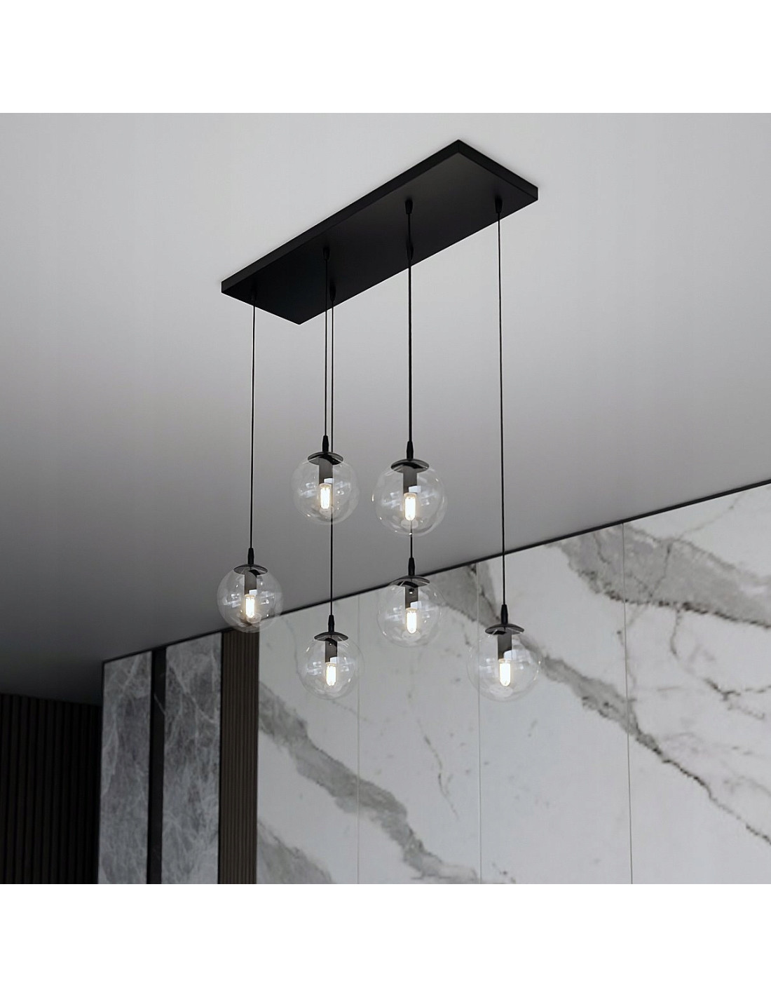 Lampa wisząca z prostokątną podsufitką ze szklanymi kulami COSMO 6 BL 10W to idealne rozwiązanie dla osób szukających nowoczesnego i eleganckiego oświetlenia. Seria COSMO łączy w sobie minimaliściczne wzornictwo oraz ponadczasową elegancję, co czyni ją wszechstronnym wyborem do różnorodnych wnętrz. Każdy detal tej lampy został starannie przemyślany, aby wprowadzić do pomieszczenia niepowtarzalną atmosferę.