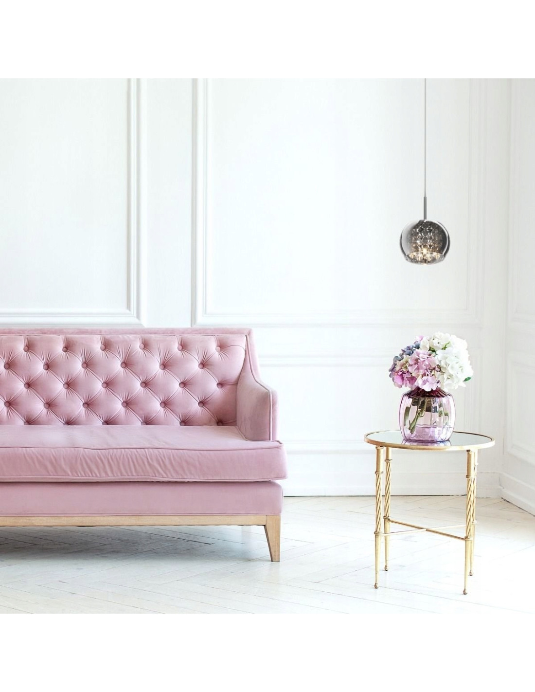 Źródła światła, umieszczone wewnątrz klosza, oświetlają kryształowe elementy, co pozwala na uzyskanie efektu połyskującego, wielopunktowego oświetlenia. Dzięki temu lampa dodaje przestrzeni luksusowego charakteru, będąc jednocześnie funkcjonalnym źródłem światła. Model ten świetnie sprawdzi się w kilku typach pomieszczeń, takich jak: