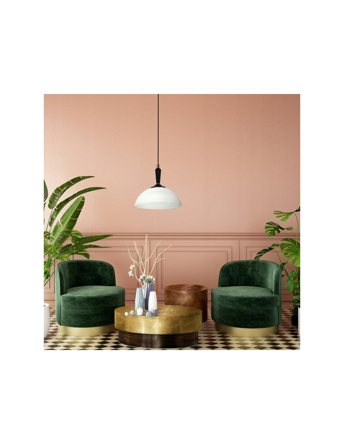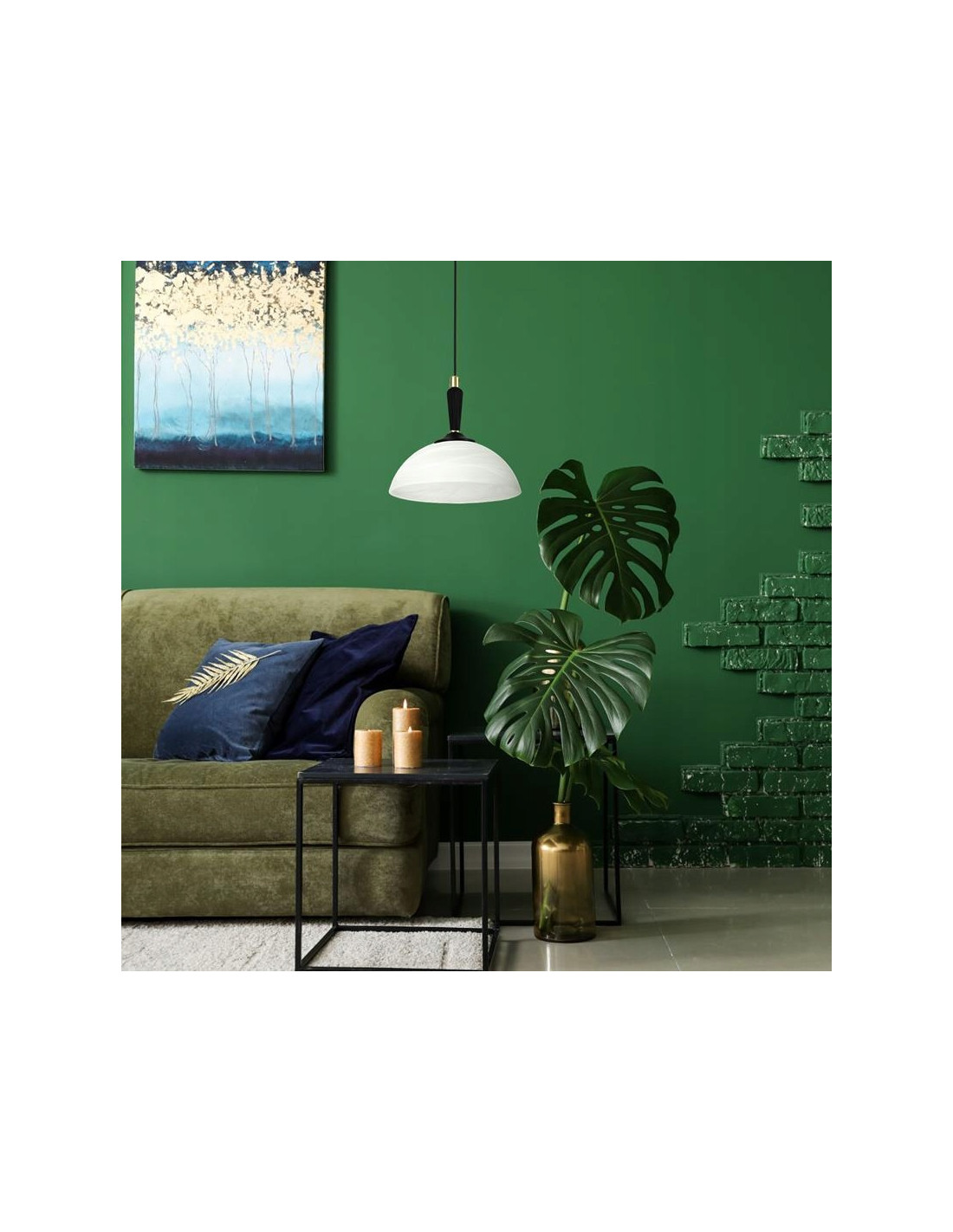 Lampa wisząca Davio z eleganckim szklanym kloszem, biała/czarna/złota, 85 cm, stylowy dodatek do wnętrz i oświetlenia.