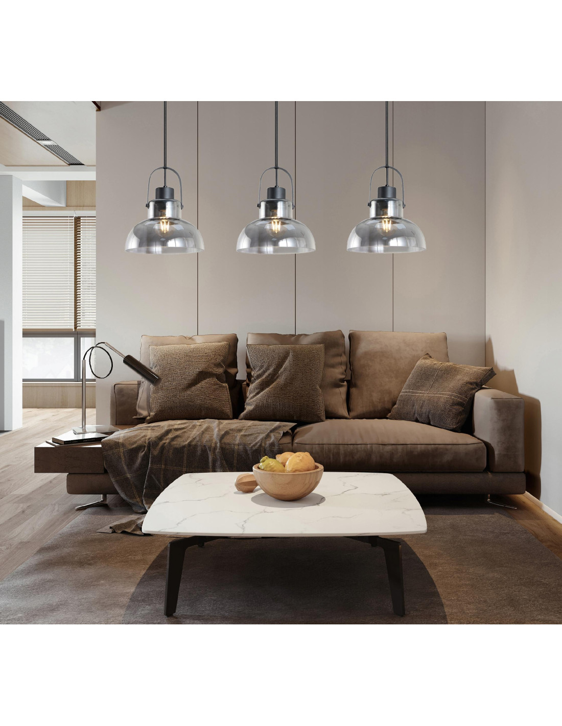 Lampa wisząca Dijon w kolorze czarnym z kloszem ze szkła dymionego to idealne rozwiązanie dla osób ceniących nowoczesny design i funkcjonalność. Jej industrialny styl sprawia, że fenomenalnie wpisuje się w aranżacje loftowe oraz nowoczesne wnętrza. Zastosowanie trzech punktów świetlnych E27 umożliwia wyeksponowanie wybranych fragmentów przestrzeni, co czyni ją doskonałym wyborem do jadalni, kuchni, salonu, a także biura.