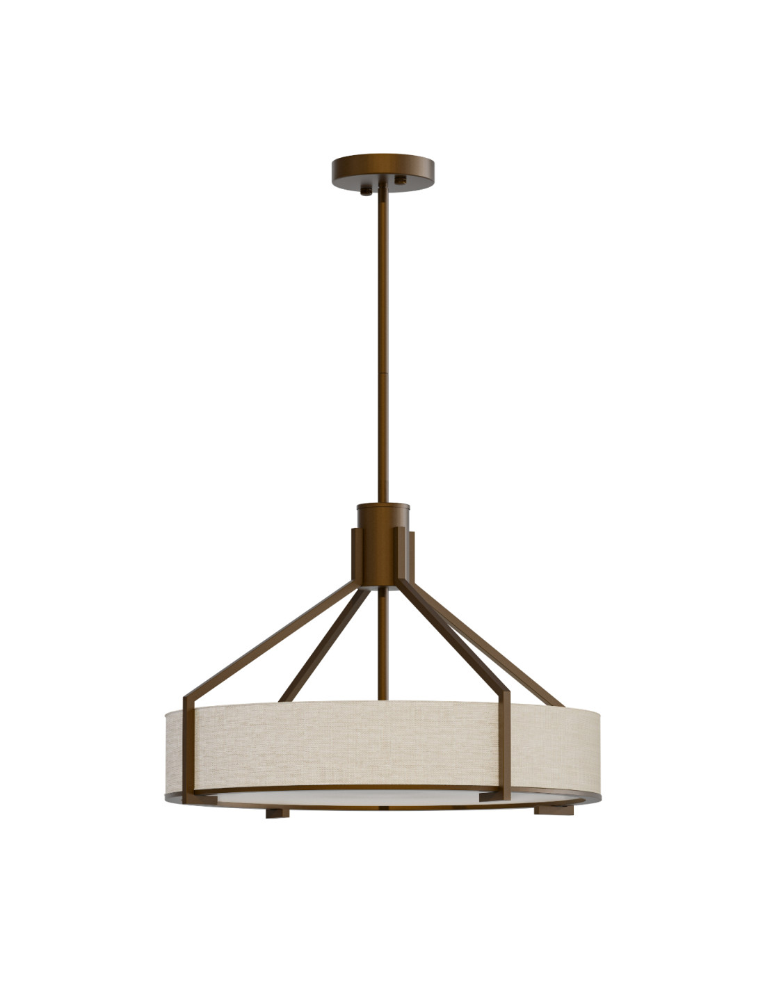 - Materiał i kolor: Metal w ciemnym brązie, tkanina w naturalnym beżu, szkło w białym matowym odcieniu.