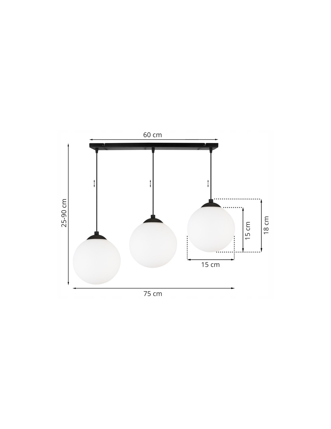 Regulowana wysokość (od 25 do 90 cm) pozwala na dostosowanie lampy do różnych potrzeb i upodobań, co czyni ją uniwersalnym rozwiązaniem w zakresie oświetlenia. Trzy mleczne szklane klosze o średnicy 15 cm emitują przyjemne, rozproszone światło, co wpływa na komfort codziennego użytkowania.