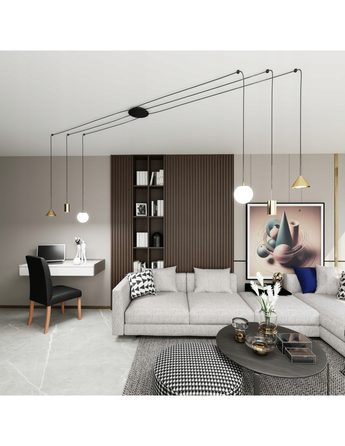 Odkryj nowy wymiar oświetlenia z żyrandolem FUJI, który łączy w sobie nowoczesny design oraz elegancję. Ten wyjątkowy element dekoracyjny to idealny wybór dla tych, którzy pragną nadać swojemu wnętrzu unikalny charakter. Zróżnicowane kształty osłonek na żarówki sprawiają, że żyrandol FUJI staje się centralnym punktem każdej przestrzeni.