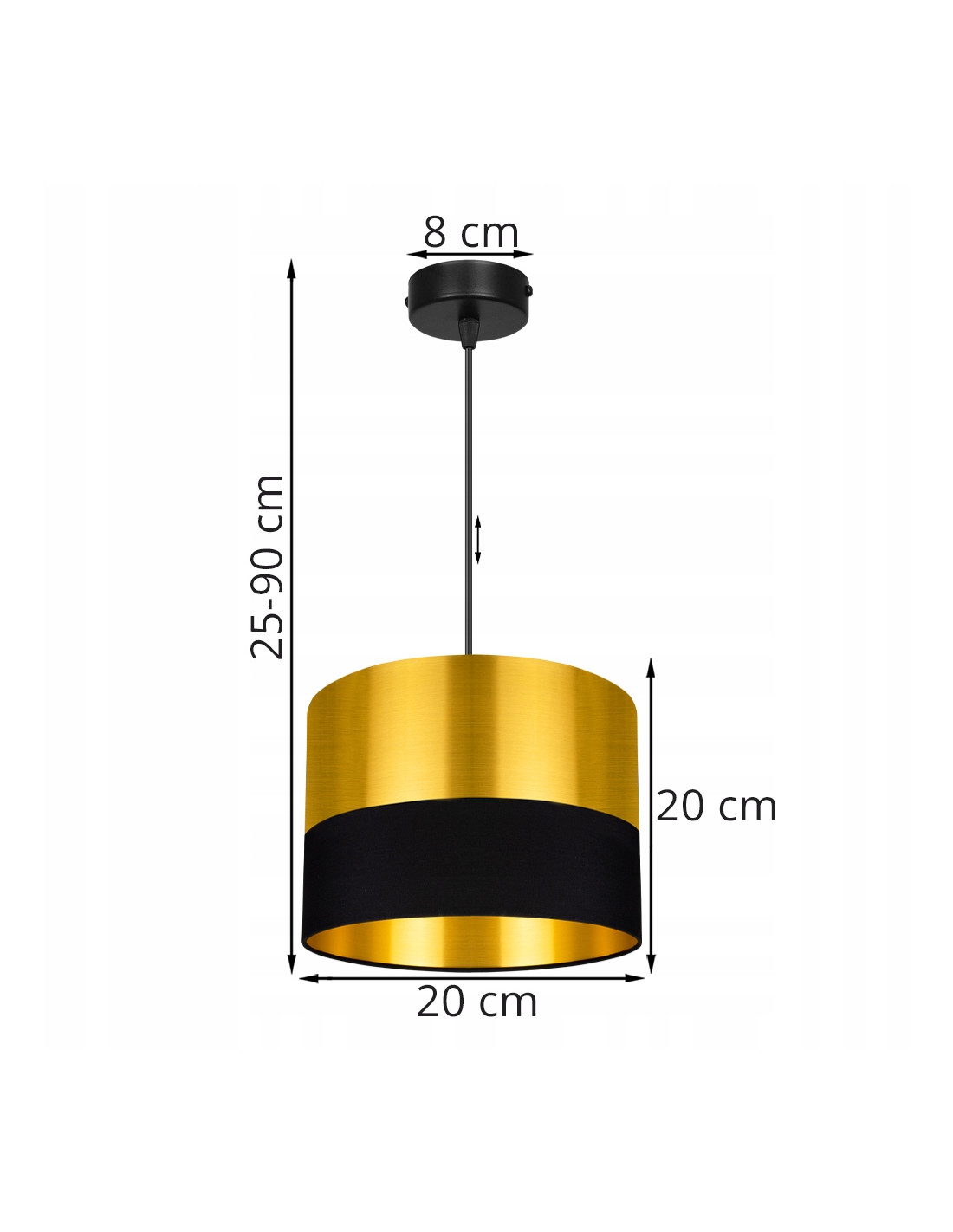 Lampa wisząca GOLDEN wyróżnia się regulowaną długością w zakresie 25-90 cm, co pozwala na dopasowanie jej do różnych przestrzeni. Szerokość lampy wynosi 20 cm, co czyni ją idealną do zarówno większych, jak i mniejszych wnętrz. Montaż lampy jest prosty i szybki, dzięki czemu będziesz cieszyć się nowym źródłem światła w mgnieniu oka.