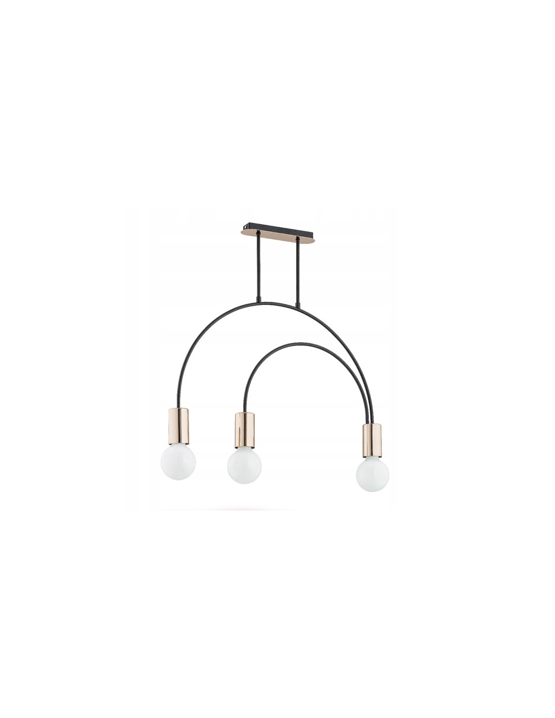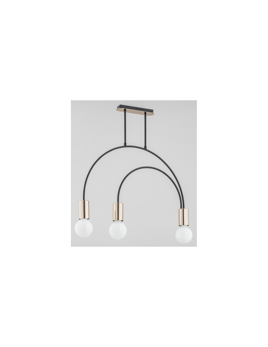 Produkt został wykonany z wysokiej jakości metalu w kolorze czarnym, co nadaje mu wyjątkowy i ponadczasowy wygląd. Dzięki zawieszeniu na złotej płytce, żyrandol zyskuje dodatkowego blasku, czyniąc go idealnym dodatkiem do biura, jadalni, kuchni czy salonu. Jego nowoczesny styl doskonale współgra z różnorodnymi aranżacjami wnętrz.