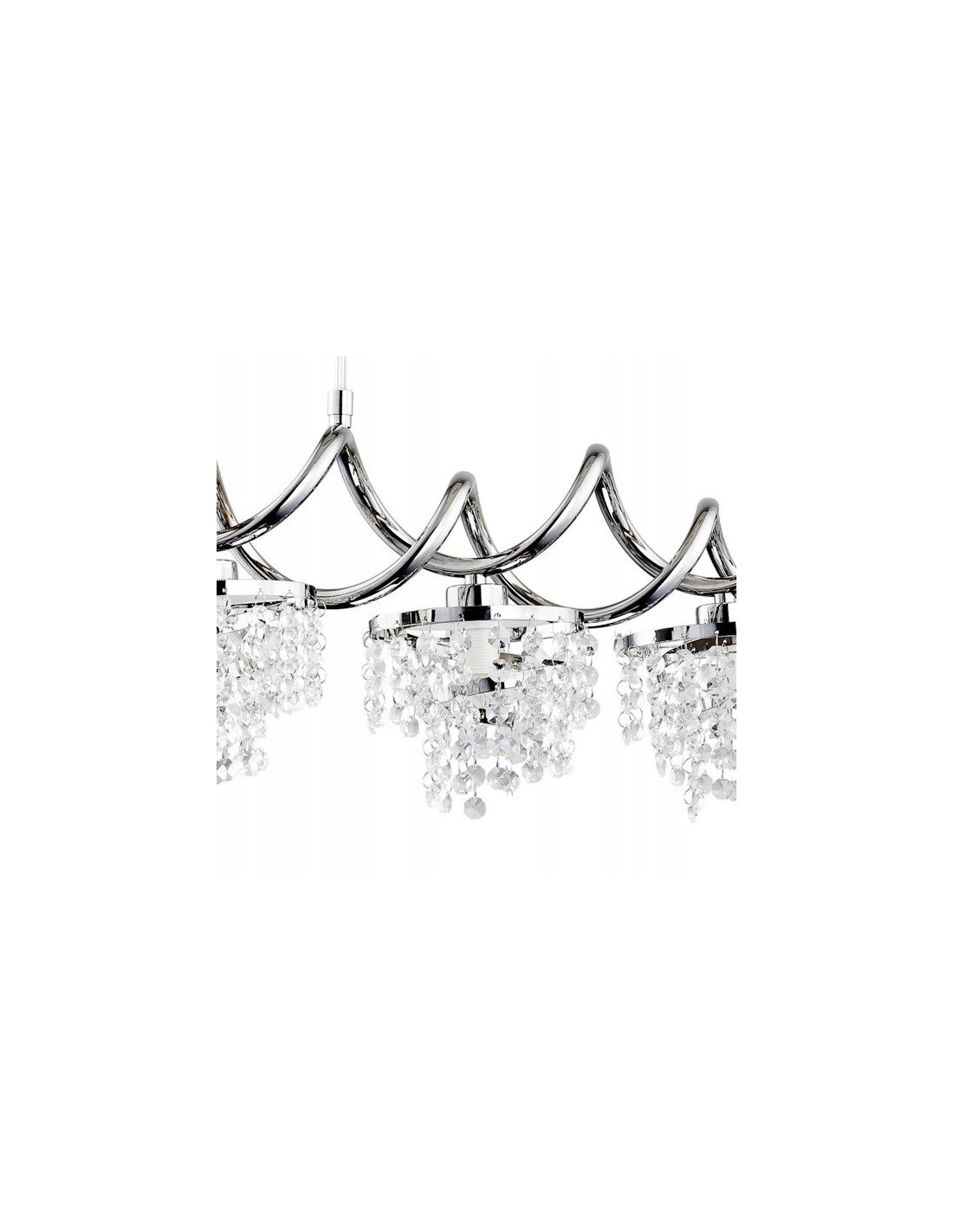 Stylowa lampa wisząca HELISA łączy w sobie elegancję oraz nowoczesny design, dzięki czemu idealnie wpisuje się w charakter każdego wnętrza. Jej chromowane wykończenie oraz kryształki sprawiają, że staje się ona nie tylko źródłem światła, ale również efektowną dekoracją, która przyciąga wzrok. Doskonała do salonu, jadalni, kuchni czy sypialni, lampę można wkomponować w praktycznie każde pomieszczenie, dodając mu odrobiny luksusu.