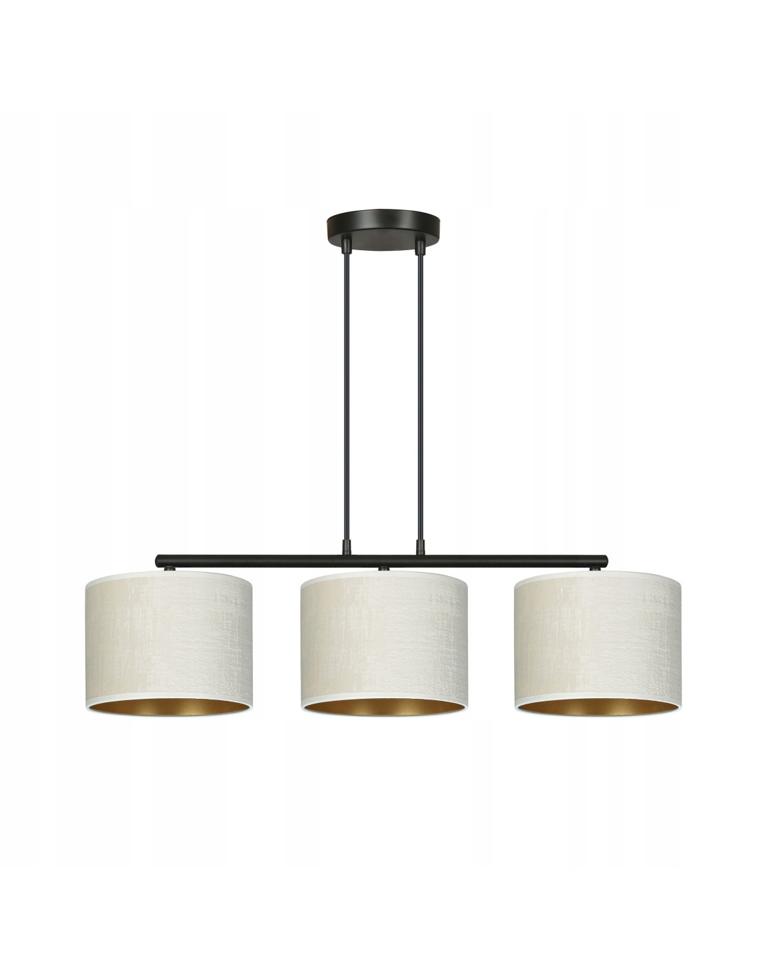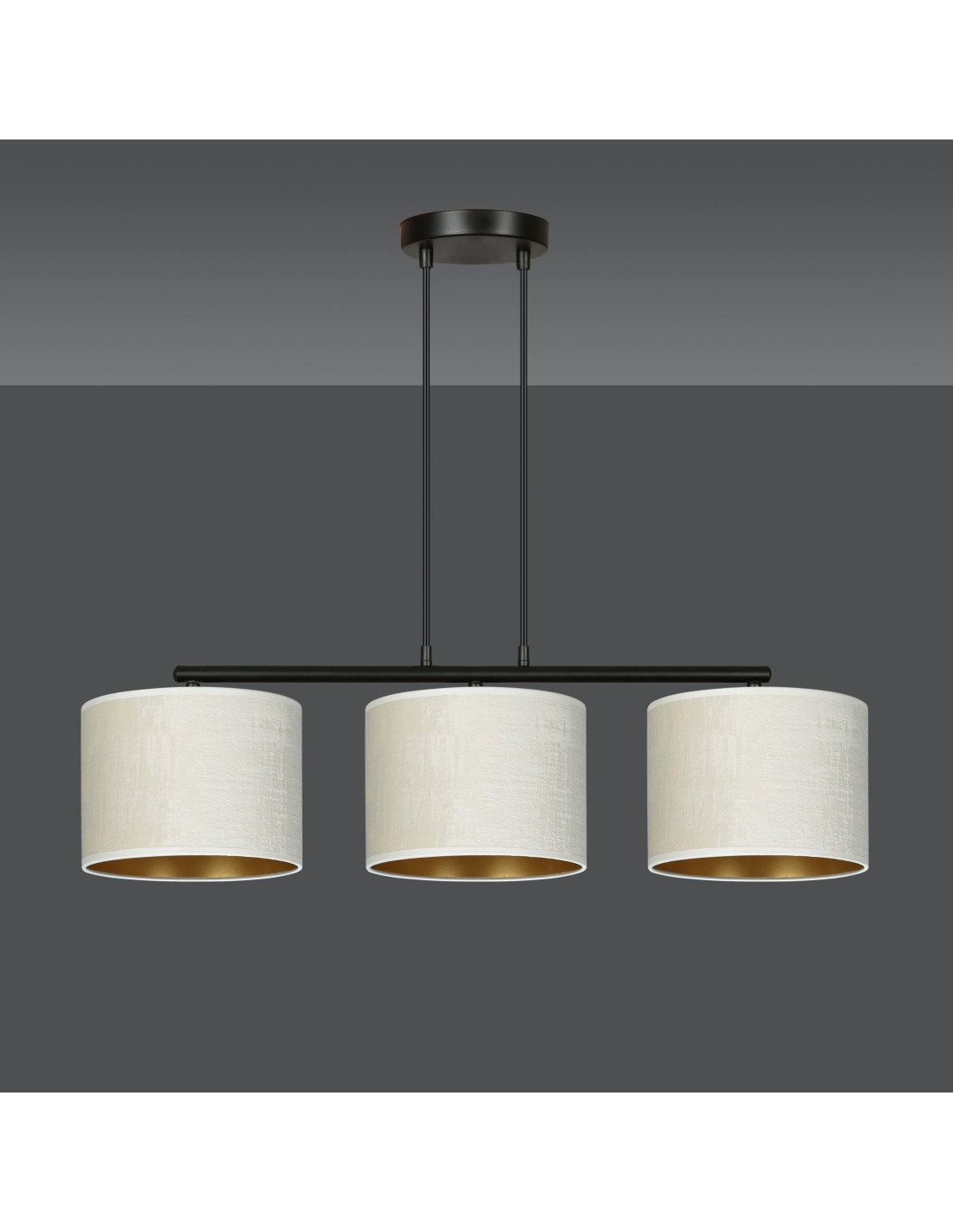 Abażury lampy wykonane zostały z trwałego materiału o welurowej fakturze i dostępne są w różnych kolorach, w tym czarnym, białym, szarym, zielonym oraz różowym. Wewnątrz abażurów znajduje się elegancki złoty środek, który nadaje całej konstrukcji wyjątkowego charakteru, idealnego dla każdego nowoczesnego domu.
