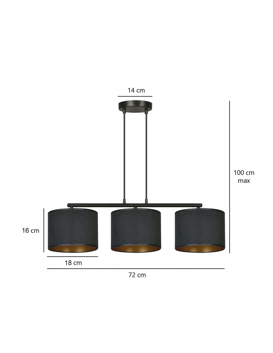 Ten wyjątkowy model lampy wyróżnia się regulacją długości przewodów, co pozwala na dostosowanie wysokości lampy do indywidualnych potrzeb. Dzięki temu możesz być pewny, że lampa HILDE 3 BL idealnie wpisze się w wałkowane przez Ciebie wnętrze. Dodatkowo, abażury wykonane są z trwałego materiału o welurowej fakturze, co nadaje im elegancki wygląd i jednocześnie zapewnia długotrwałe użytkowanie.