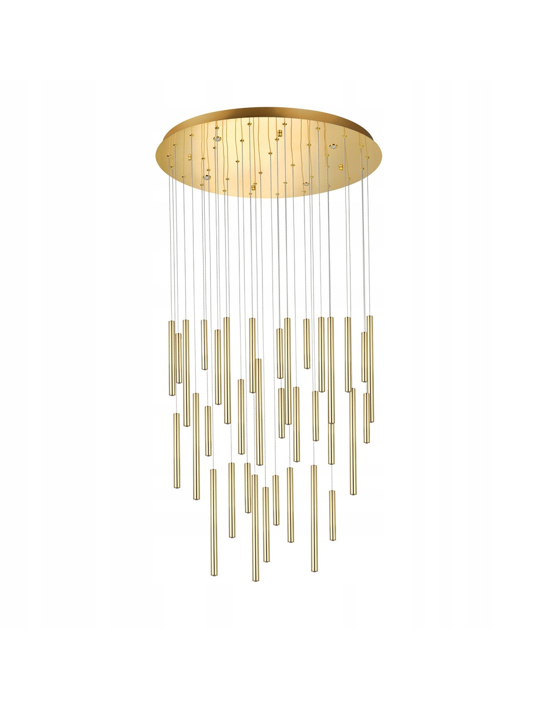 Design lampy łączy w sobie minimalizm z nowoczesnymi technologiami oświetleniowymi. Składająca się z 36 smukłych tub w kolorze lśniącego złota, lampa przyciąga wzrok i staje się kluczowym punktem w aranżacji salonu, jadalni czy biura. Jej elegancka forma sprawia, że doskonale wpisuje się w każde wnętrze, niezależnie od stylu.