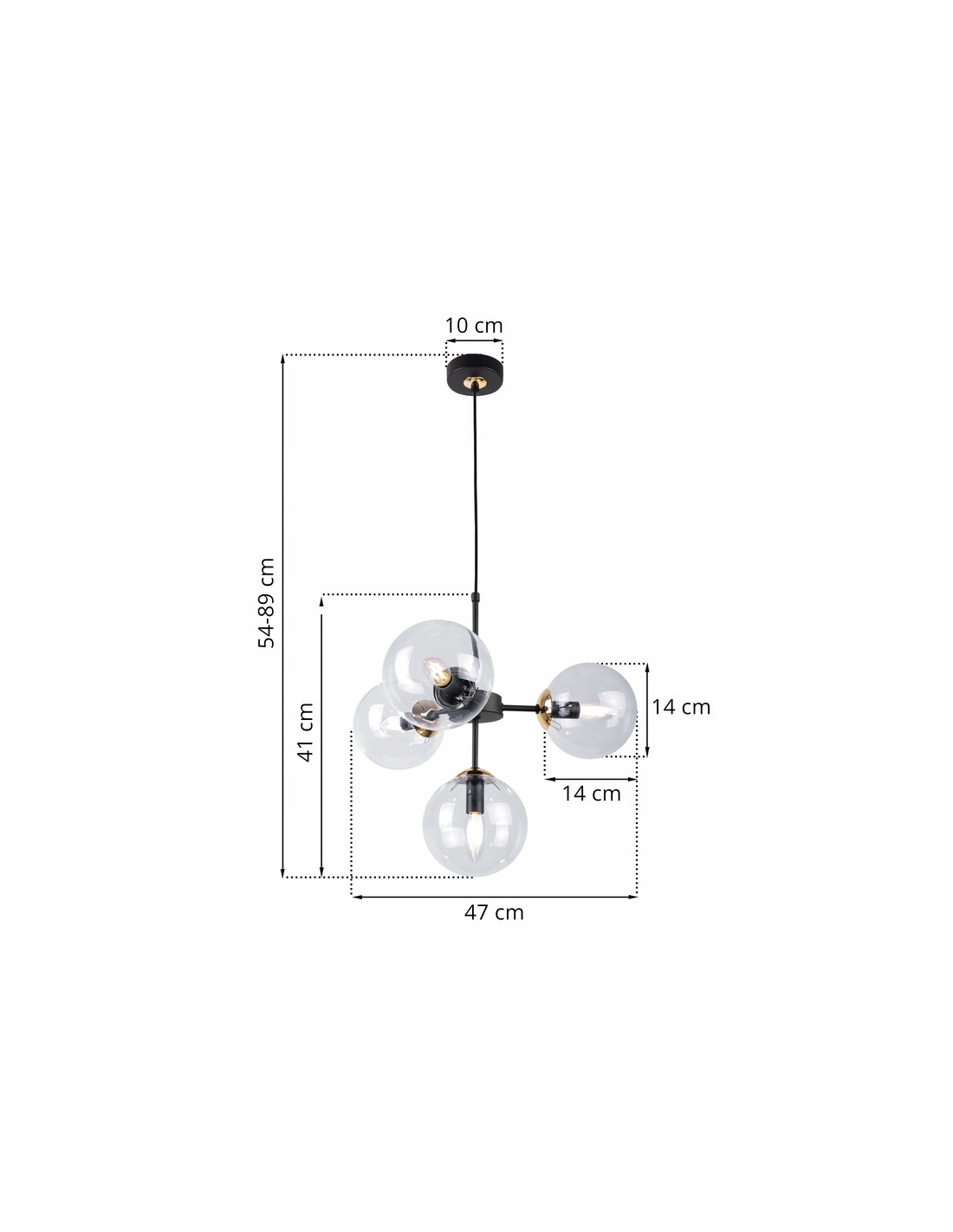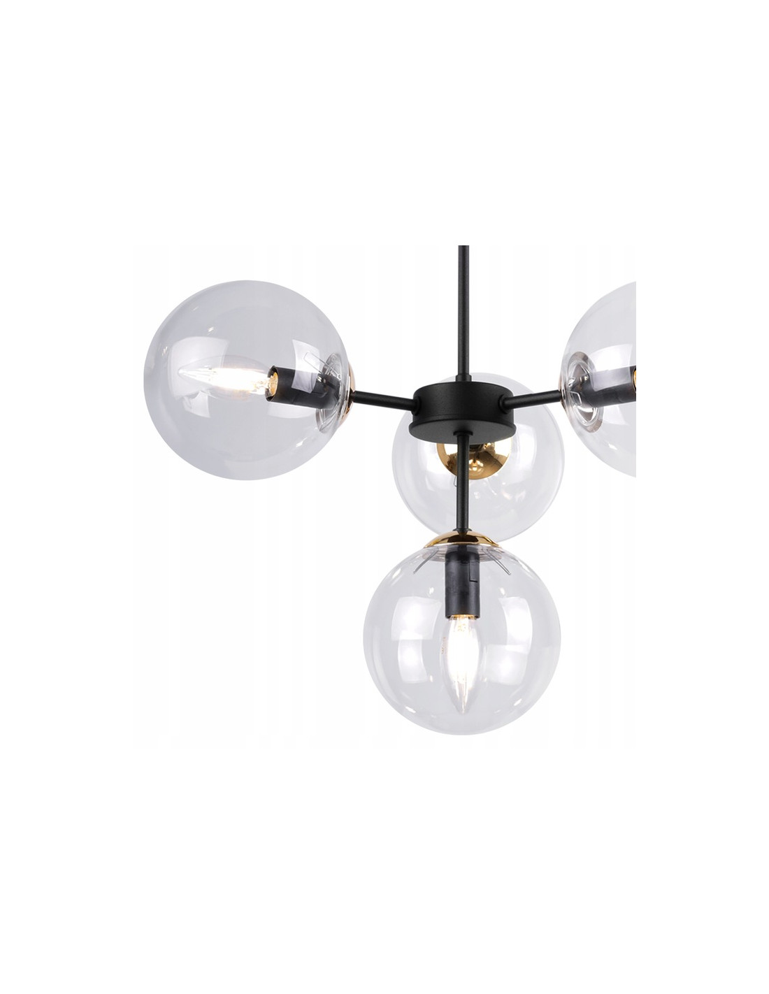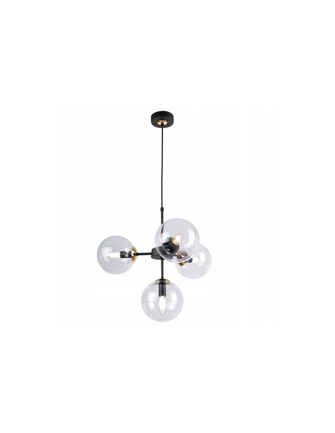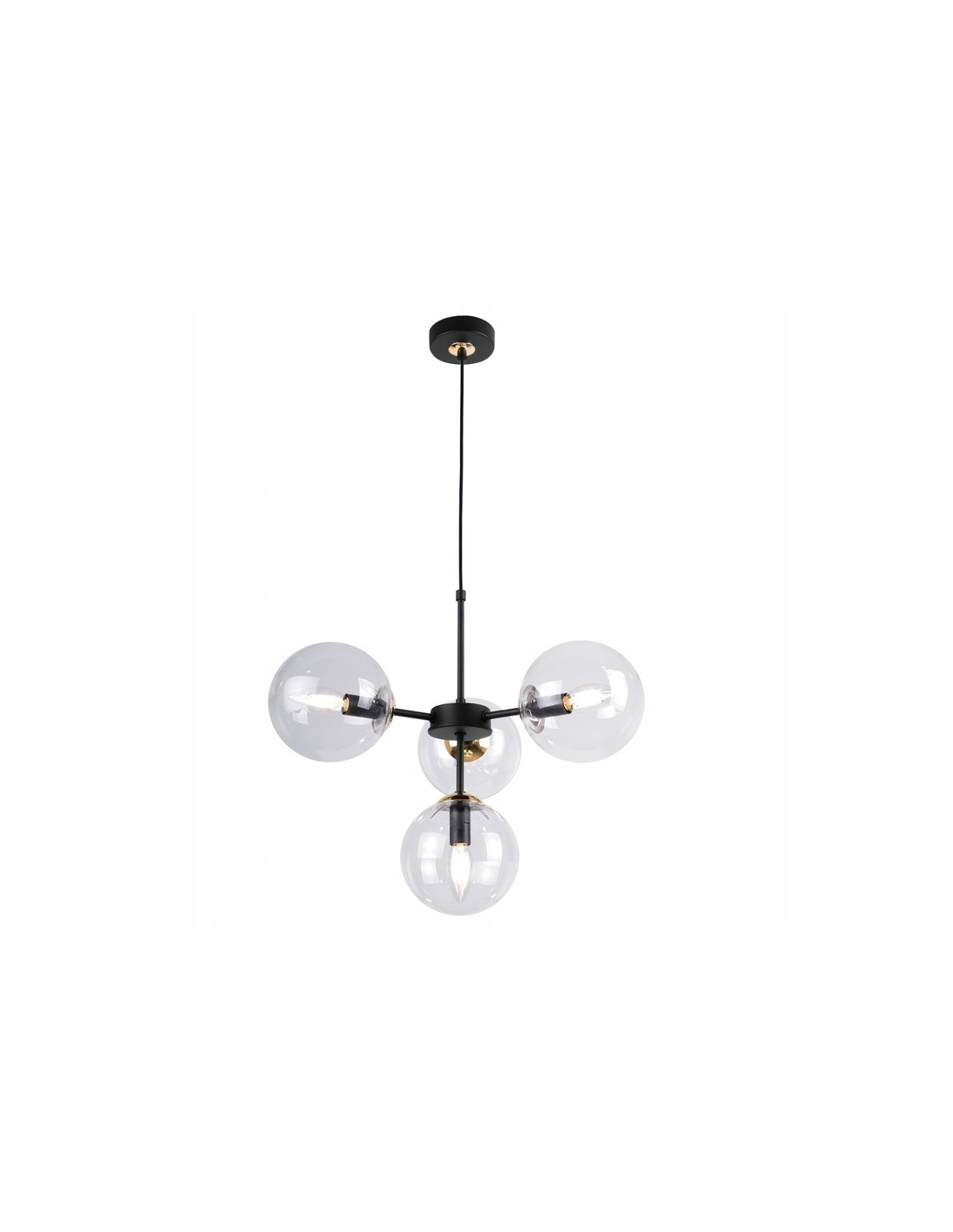 Dzięki regulowanej długości przewodu, lampa oferuje niezwykłą elastyczność. Można ją dostosować do indywidualnych potrzeb i wysokości pomieszczenia, co czyni ją uniwersalnym rozwiązaniem dla każdego wnętrza. Czarna, metalowa konstrukcja dodaje nowoczesnego charakteru, a przezroczyste klosze wprowadzają do wnętrza elegancki akcent.