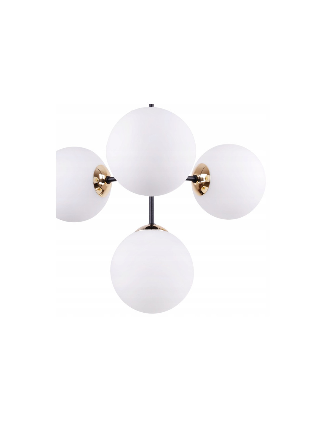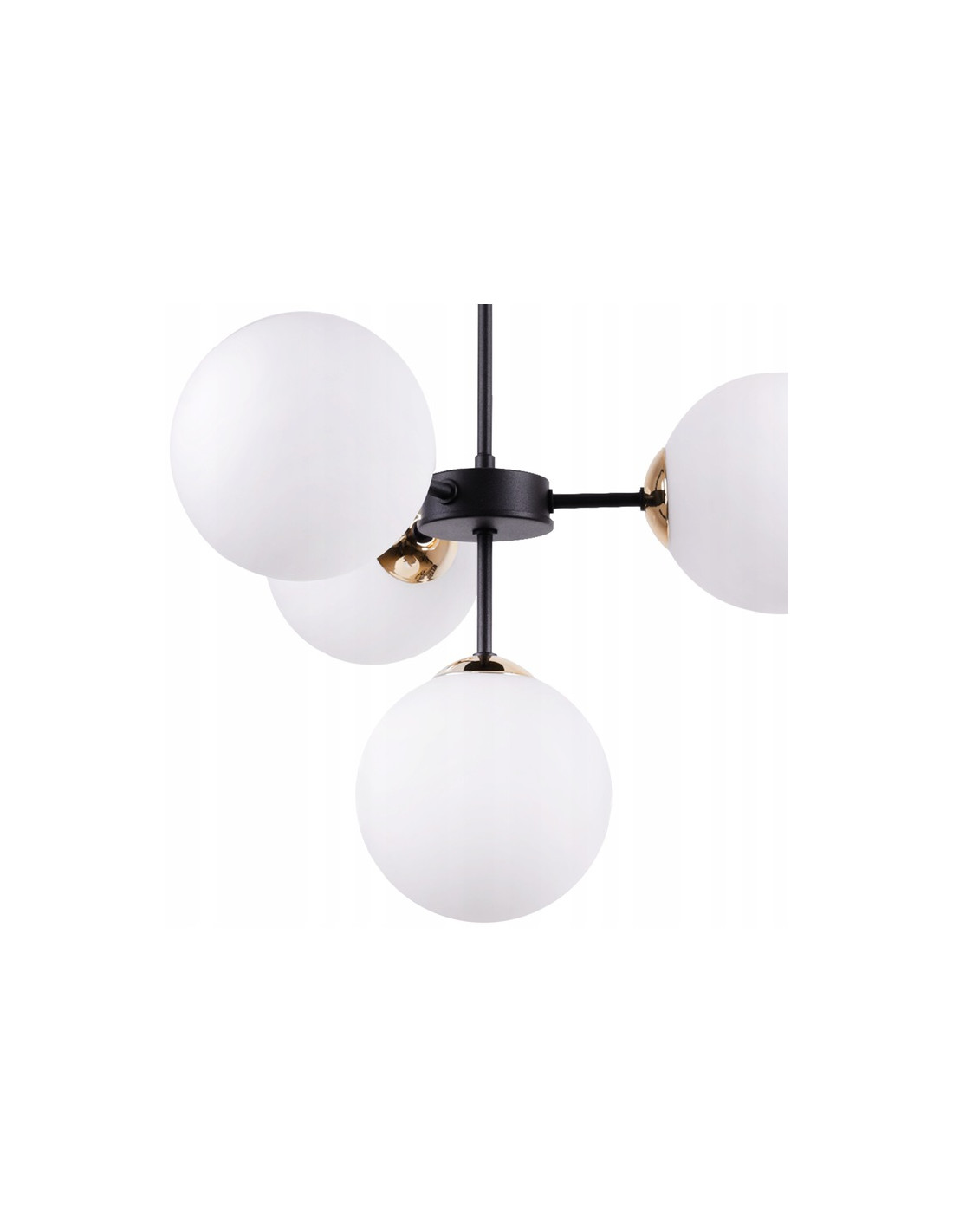 Lampa sufitowa z serii Imperia to wyjątkowy element oświetleniowy, który doskonale wpisuje się w trendy nowoczesnego designu. Jej elegancka konstrukcja w czarnym kolorze wzbogacona jest o cztery szklane klosze z zachwycającym złotym wykończeniem, które tworzą niepowtarzalną atmosferę w każdym wnętrzu. To idealna propozycja dla osób poszukujących oryginalnych rozwiązań, które jednocześnie będą praktyczne i estetyczne.