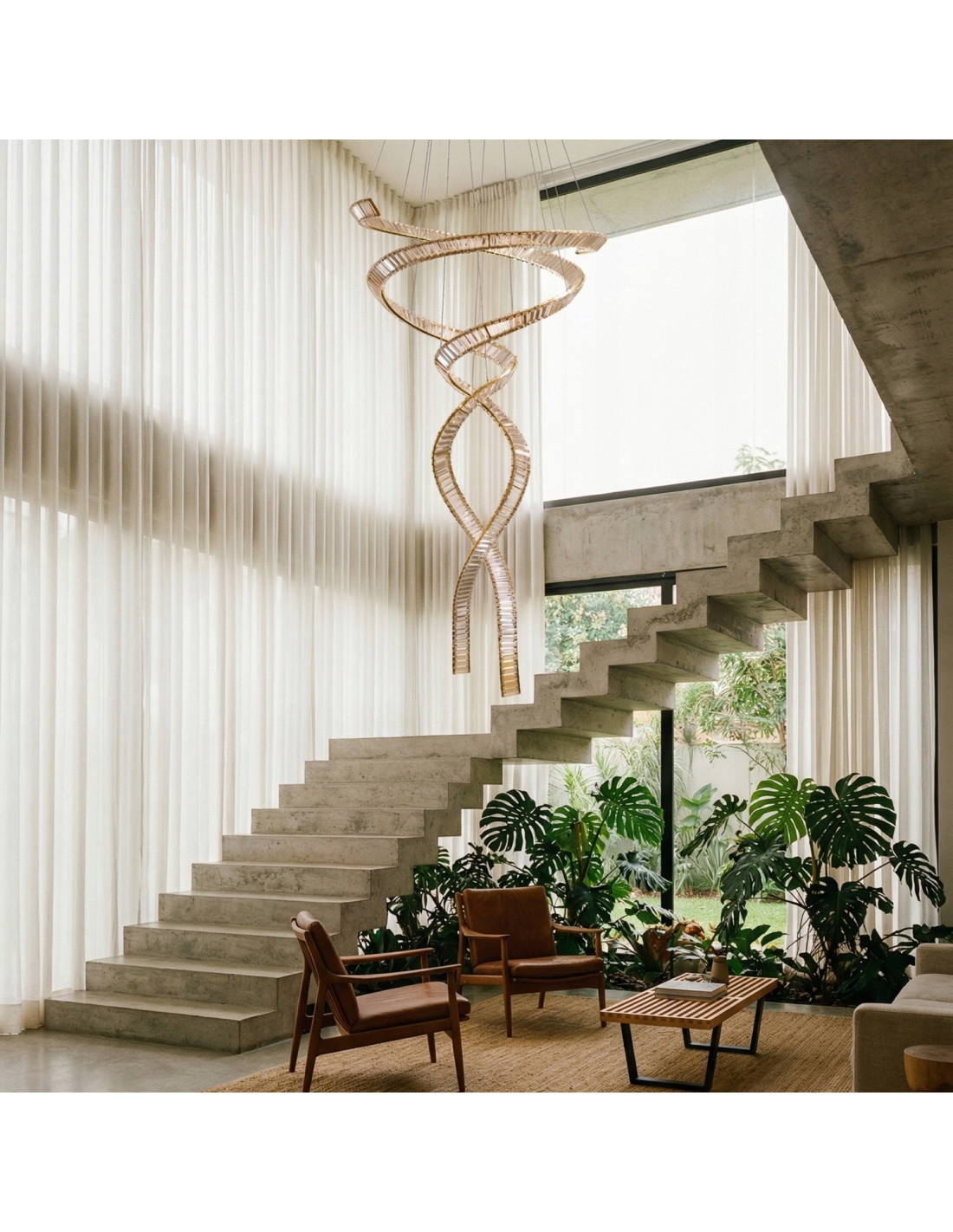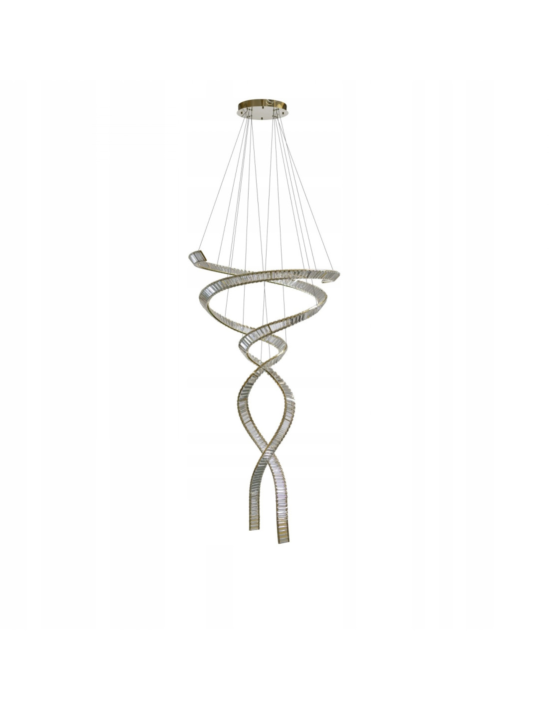 Lampa wisząca kaskadowa SPARK SPIRAL XXL to efektowny element oświetleniowy, który łączy w sobie nowoczesny design z wysoką funkcjonalnością. Wykonana z wysokiej jakości aluminium w odcieniu złotym, przeznaczona jest do wnętrz o dużej przestrzeni i wysokich sufitach, gdzie może w pełni zaprezentować swoje walory. Model posiada zintegrowane źródła LED o łącznej mocy 280W oraz możliwość regulacji barwy światła (CCT) i ściemniania, co pozwala na dopasowanie oświetlenia do różnych potrzeb i nastrojów.