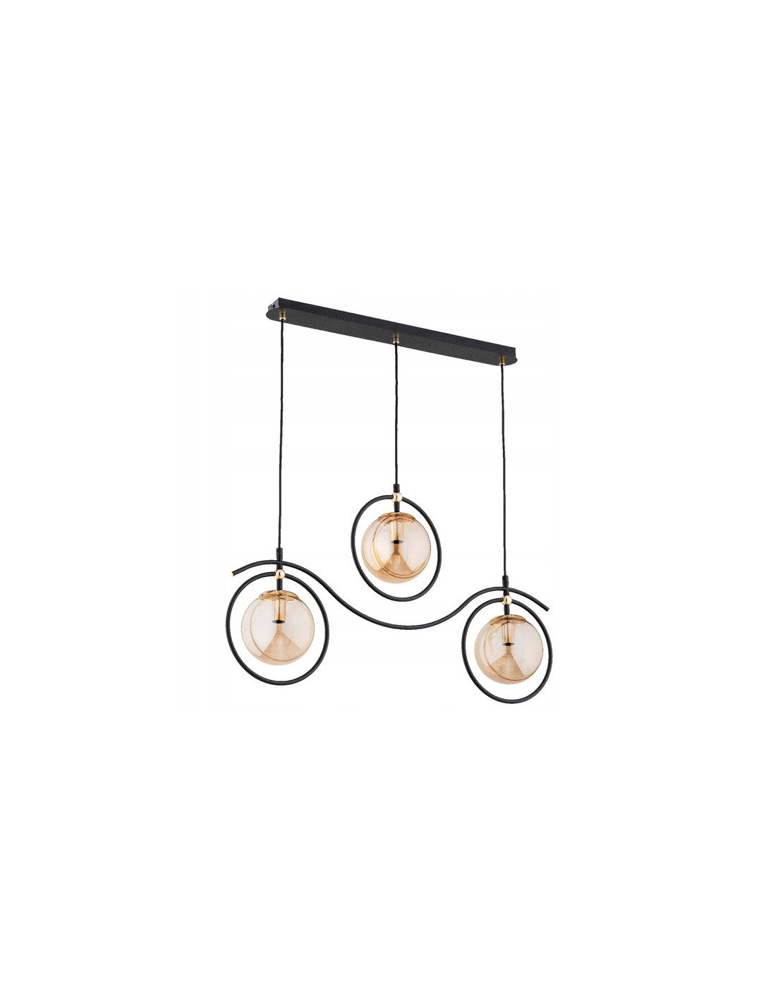 Lampa wisząca KIRA CZARNA & ZŁOTA to wyjątkowy element wystroju, który doskonale sprawdzi się w nowoczesnych oraz glamour wnętrzach. Jej elegancka forma z lakierowanej stali w połączeniu z subtelnymi bursztynowymi bańkami ze szkła przyciąga wzrok, nadając pomieszczeniom niepowtarzalnego charakteru. Dzięki swojej uniwersalnej kolorystyce, lampa wkomponuje się w większość aranżacji, wprowadzając do nich ciepło i przytulność.