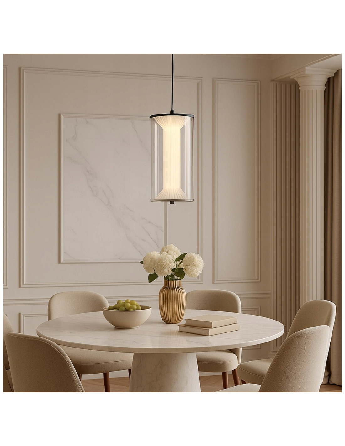 Lampa wisząca Aeris to elegancki element, który doskonale wpasuje się zarówno w nowoczesne, jak i klasyczne wnętrza. Jej transparentny klosz w kształcie cylindra subtelnie rozprasza światło, tworząc w pomieszczeniu delikatną poświatę. Oferując nowoczesny design połączony z ponadczasową elegancją, lampa Aeris stanie się nie tylko funkcjonalnym źródłem światła, ale również stylowym akcentem dekoracyjnym.